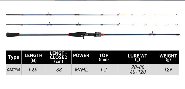 • Peso variable :Con un peso variable de 20-80g/40-120g ML/M, este baitcasting se adapta a las necesidades de cada pesca, permitiendo un manejo preciso y cómodo.