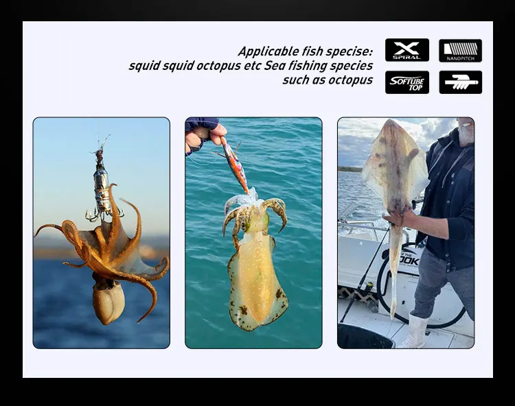 Es perfecta como caña para sepias. La caña específica para calamar era demasiado rígida, por lo que la sensibilidad no era muy buena. Tiene buena sensibilidad, es económico y cuenta con dos anzuelos, por lo que también se puede usar para la pesca de pulpos. Altamente recomendado~