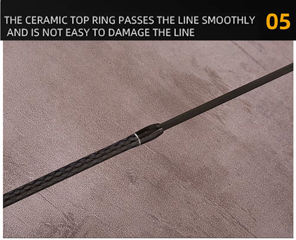 1. El cuerpo principal de la varilla está hecho de fibra de alto carbono.Ligero y con mejor rendimiento de detección, muy sensible.El asiento de tubería está hecho de nailon de alta resistencia moldeado por inyección integrado.El exterior utiliza la pintura artesanal para hornear piano.Colocación Mango intermediario de corcho.Antideslizante.Resistente al agua.