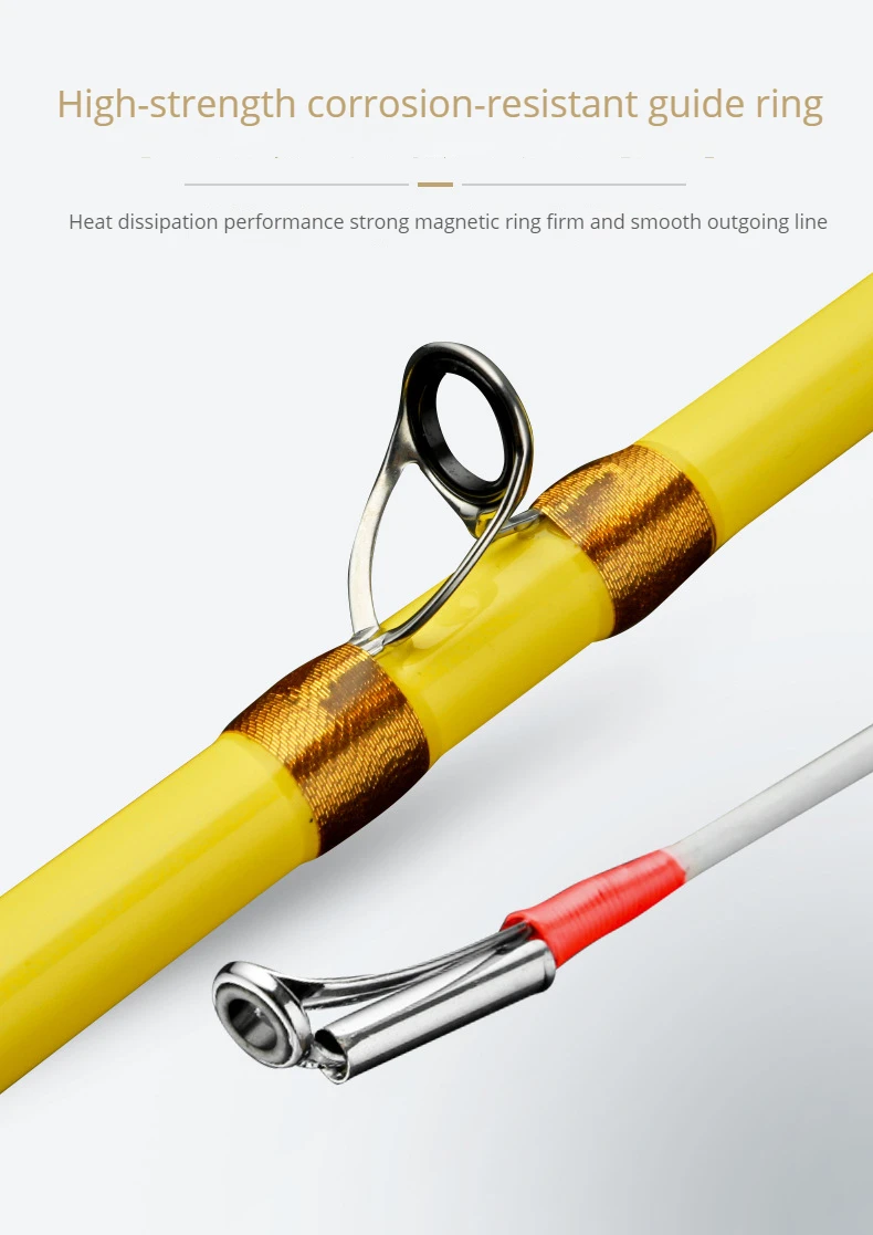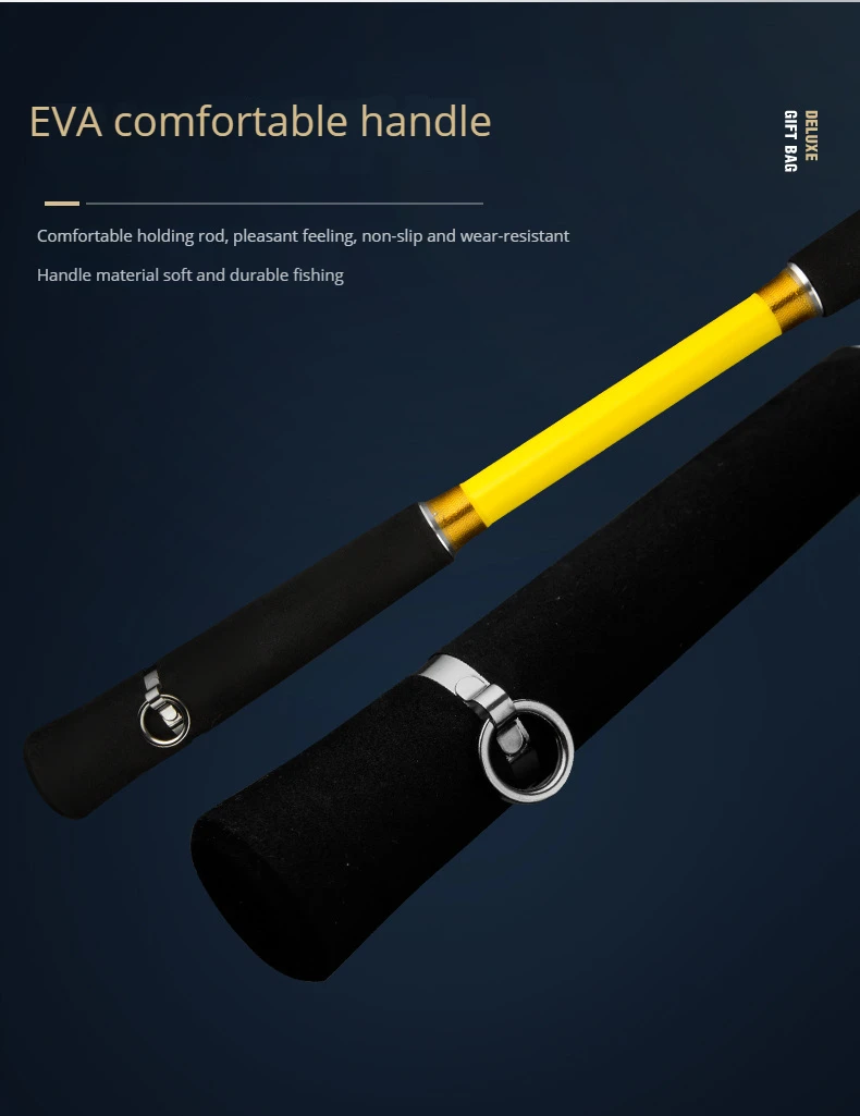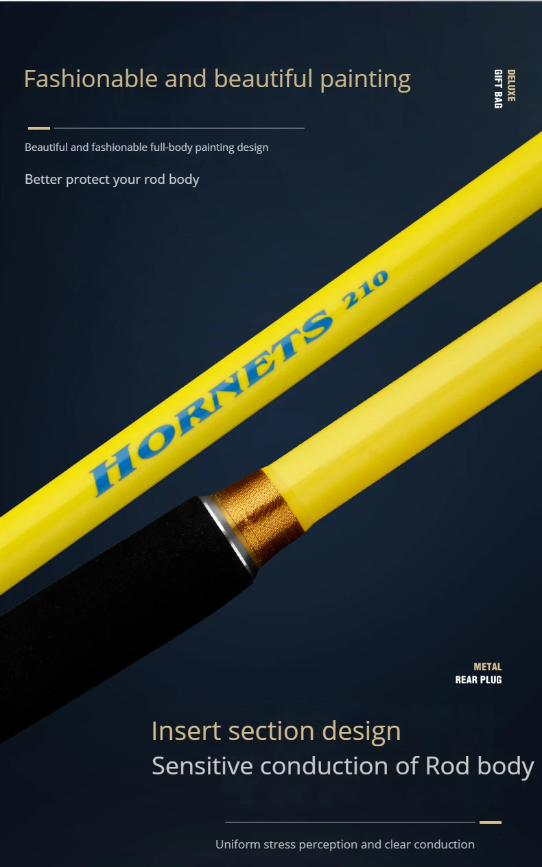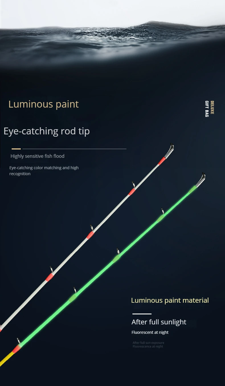 La varilla hueca no es ligeramente pesada y se siente bien.La parte blanca del extremo frontal de la varilla tiene un revestimiento luminoso.También puedes ver que la caña tiembla ligeramente cuando estás sentado pescando por la noche.
