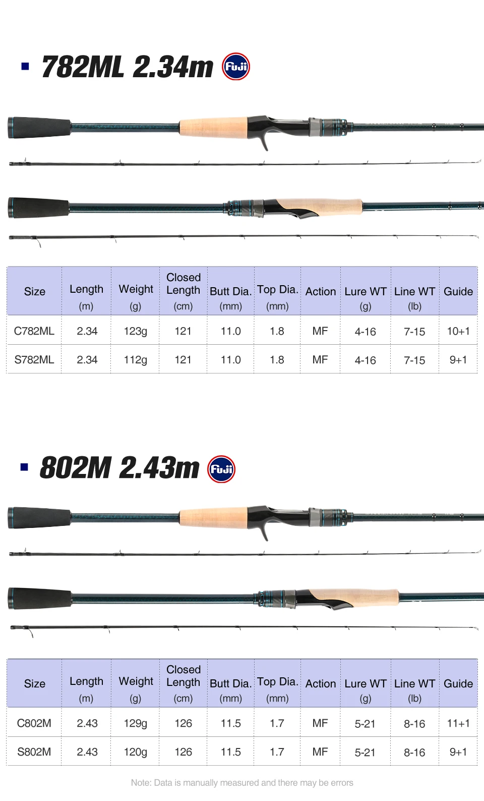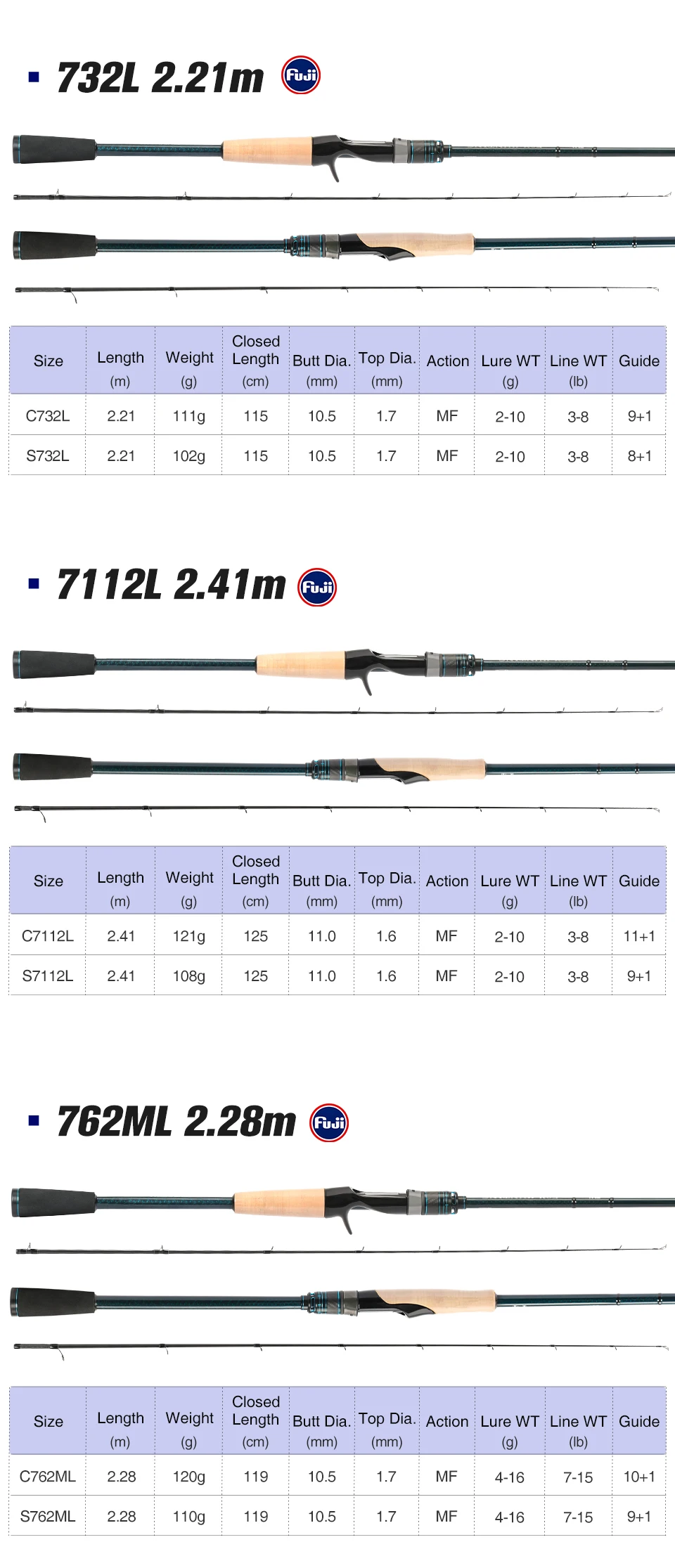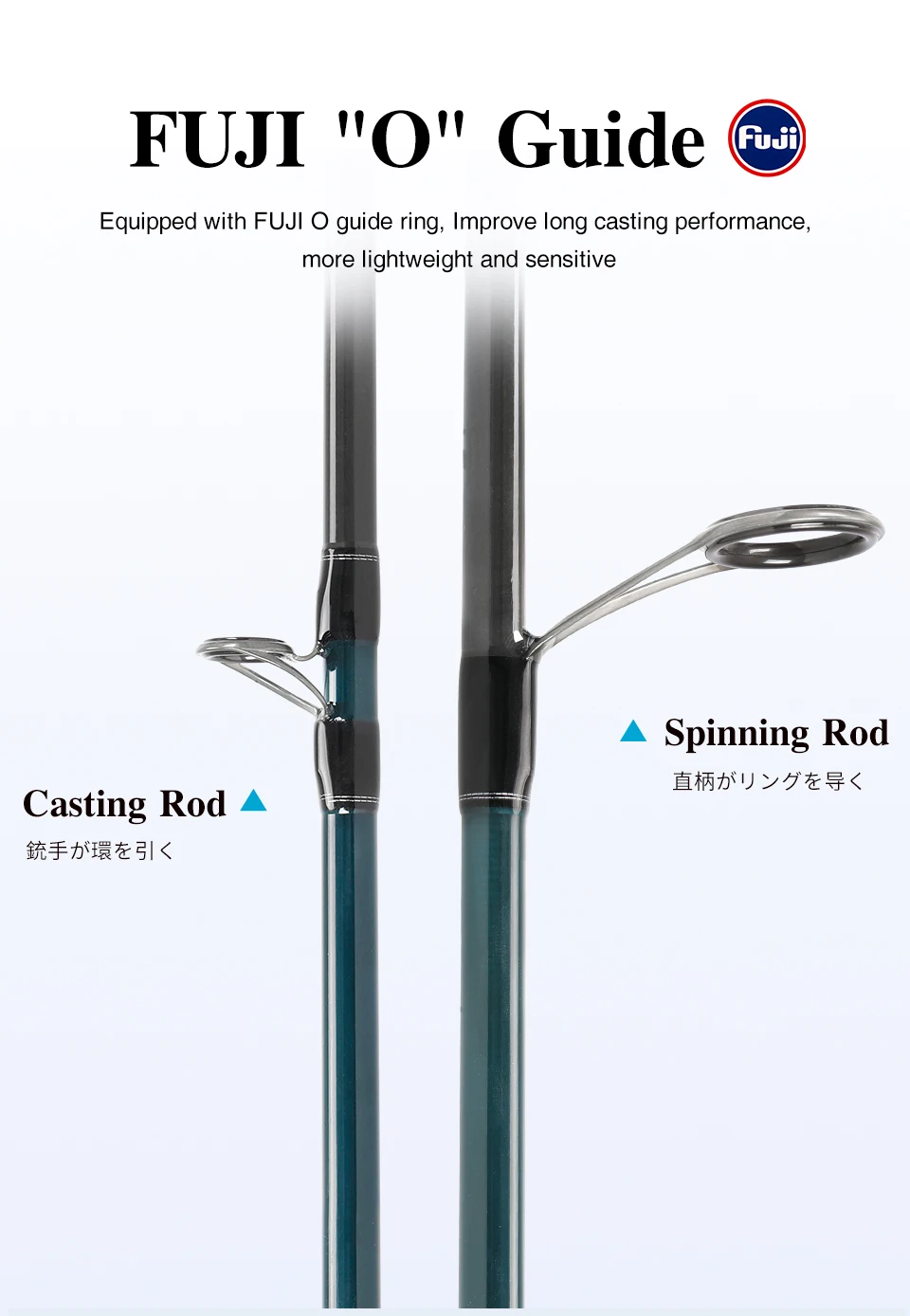 Equipado con anillo guía FUJI O, mejora el rendimiento de lanzamiento prolongado, más liviano y sensible