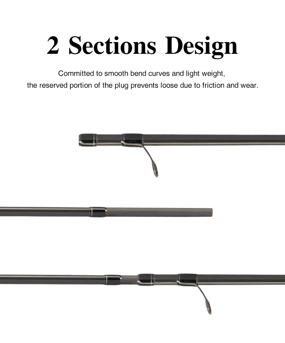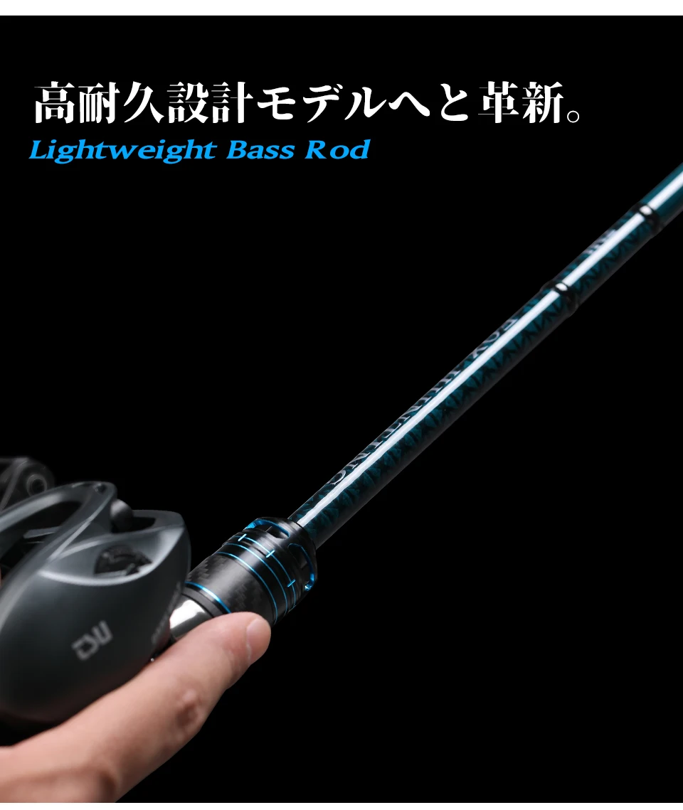 Varilla con tejido de carbono Toray 30T + 40T para garantizar una alta resistencia y al mismo tiempo suprimir mejor la oscilación de la varilla, logrando así una excelente distancia de lanzamiento.