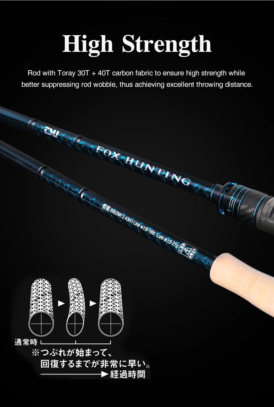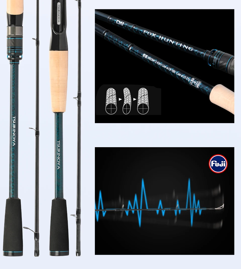 TSURINOYA caña de pescar de fundición larga FOX HUNTING 732L 7112L 762ML 782ML 802M Spinning Casting Bass Lucio 2 Secciones Varilla MF Acción