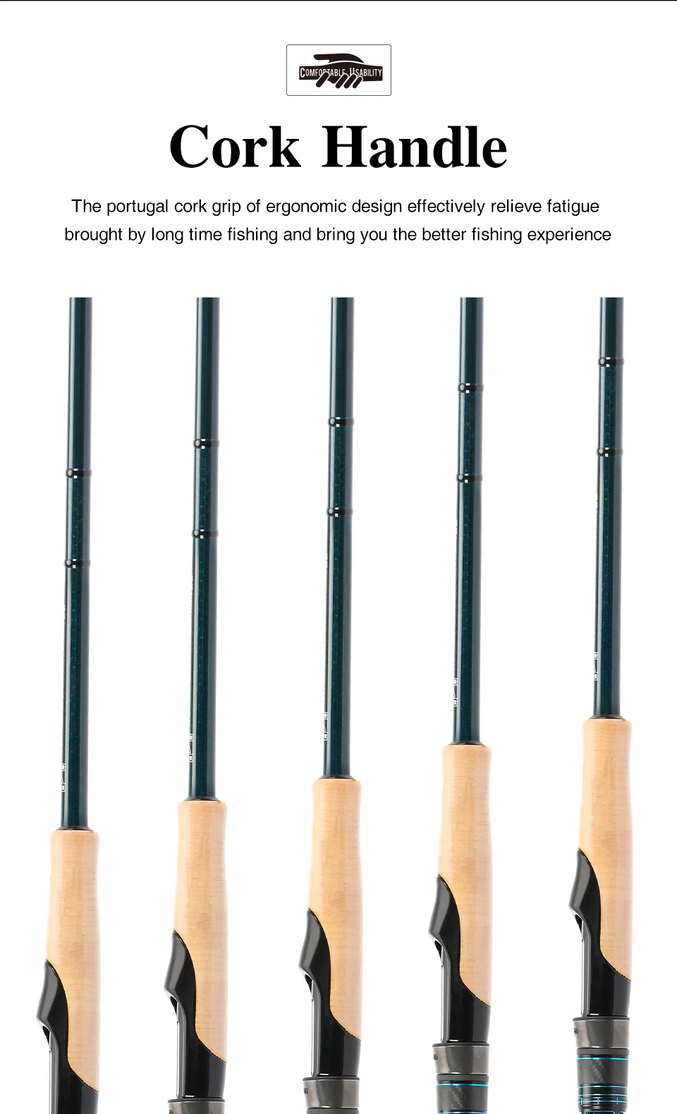 El agarre de corcho portugal de diseño ergonómico alivia eficazmente la fatiga provocada por la pesca prolongada y le brinda una mejor experiencia de pesca.