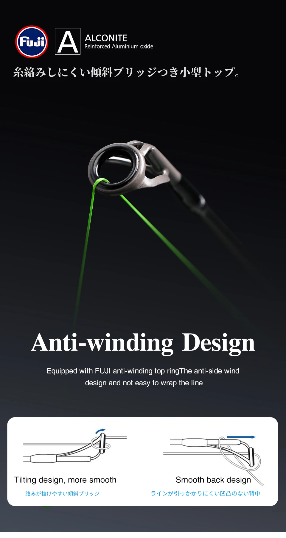Equipado con un anillo superior anti-bobinado FUJI. El diseño anti-viento lateral y no es fácil envolver la línea.