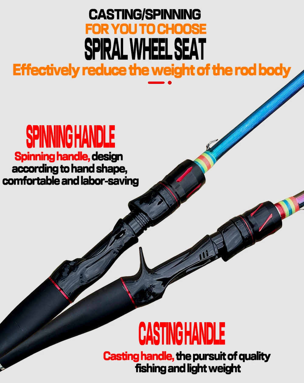 Ya sea que esté pescando trucha, lubina o jigging, esta caña de pescar puede manejarlo todo. Con una columna vertebral flexible pero potente, esta caña puede soportar la lucha incluso de los peces más duros. Los suaves anillos de guía de cerámica garantizan que la línea fluya sin esfuerzo, reduciendo la fricción de la línea y el desgaste en la línea. El anillo superior de cerámica antienredos y el asiento en espiral bloquean el carrete de pesca de forma segura en su lugar, evitando que se retuerza o gire durante lanzamientos pesados.