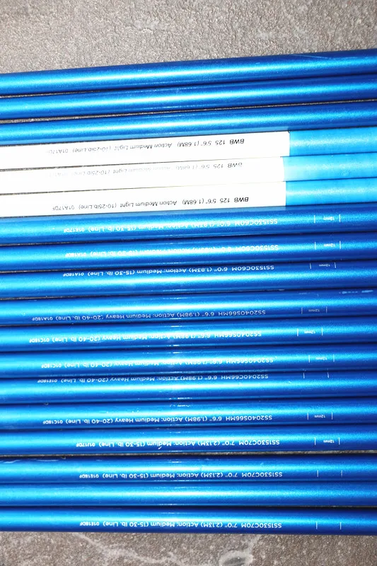 1,68 M, sección de la suela, diámetro de la punta 3,9mm, diámetro del trasero 12mm, 260g, azul o azul y blanco, pintado