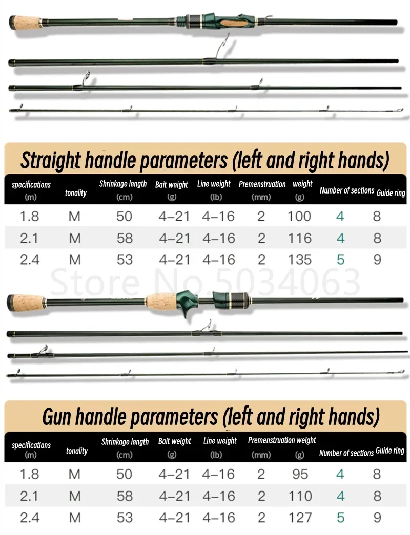 Caña de pescar de fundición giratoria de 1,8-2,4 m, anillo guía K 40T X carbono L.W 4-21g M, caña de señuelo eléctrica, 4 piezas, caña de viaje ultraligera de 55cm