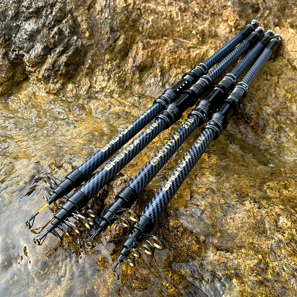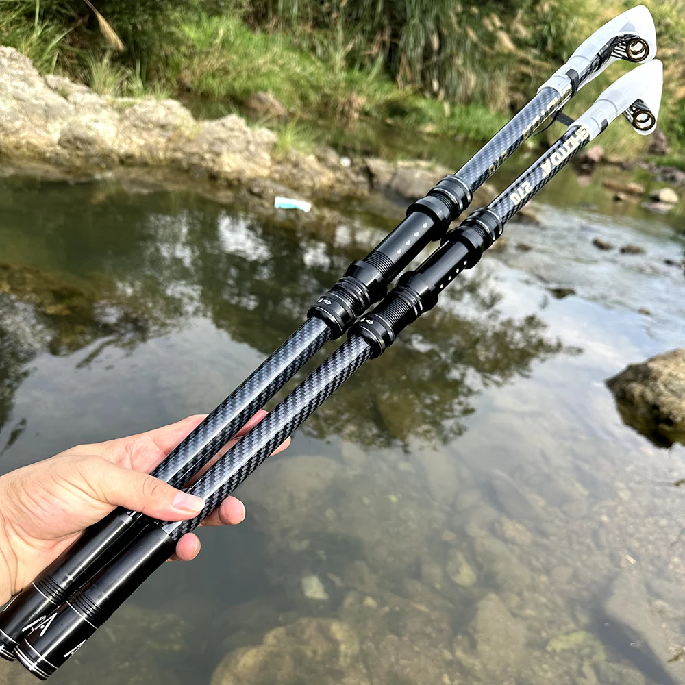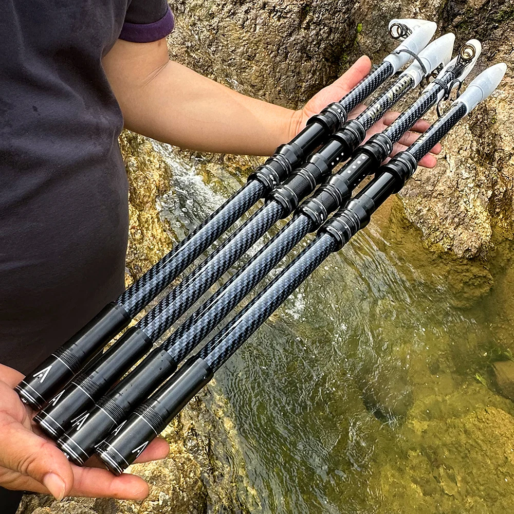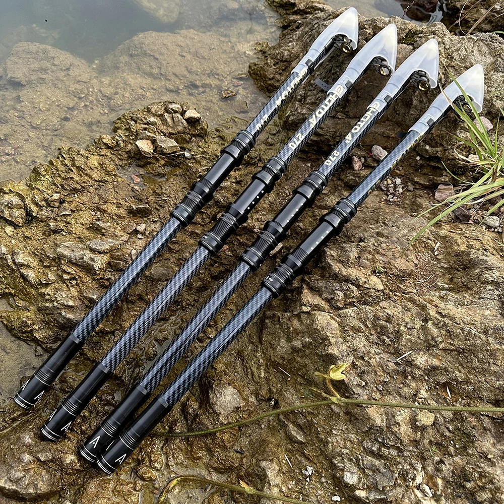 Caña de pescar giratoria de 2,1 M-4.5 M, equipo de pesca telescópico de carbono, poste alimentado de carpa portátil de larga distancia, cañas de barco de mar duro y fuerte