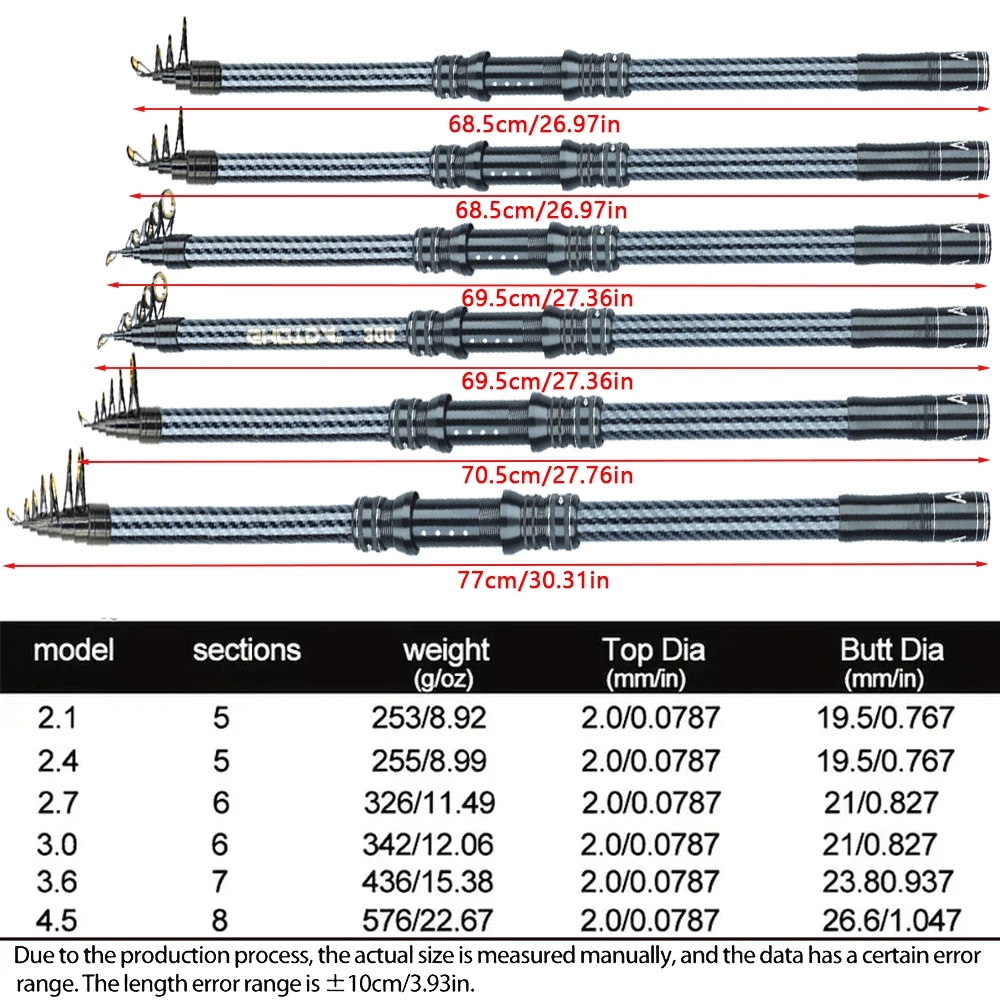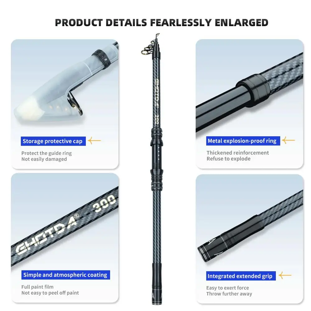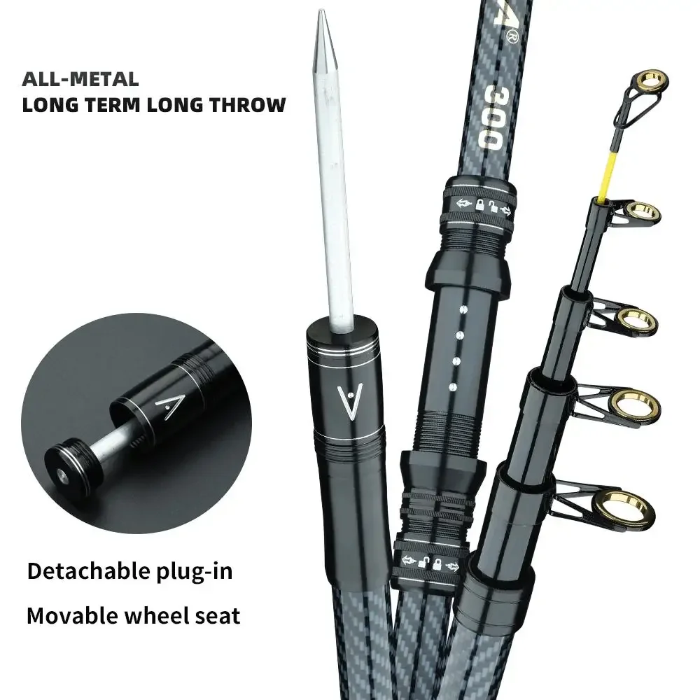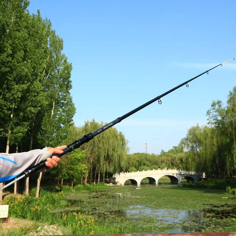 Caña de pescar giratoria de 2,1 M-4.5 M, equipo de pesca telescópico de carbono, poste alimentado de carpa portátil de larga distancia, cañas de barco de mar duro y fuerte
