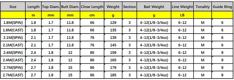 Caña de pescar giratoria de 3 secciones, poste de señuelo de fundición de fibra de carbono de 1,8 m/2,1 m/2,4 m/2,7 m, cañas de pescar de lubina rápidas de viaje portátiles