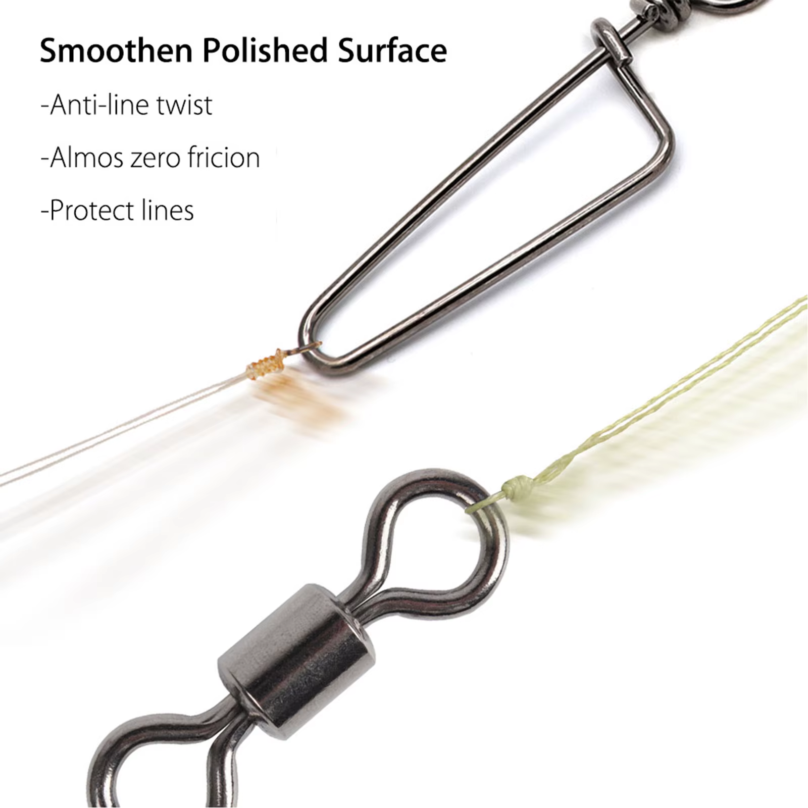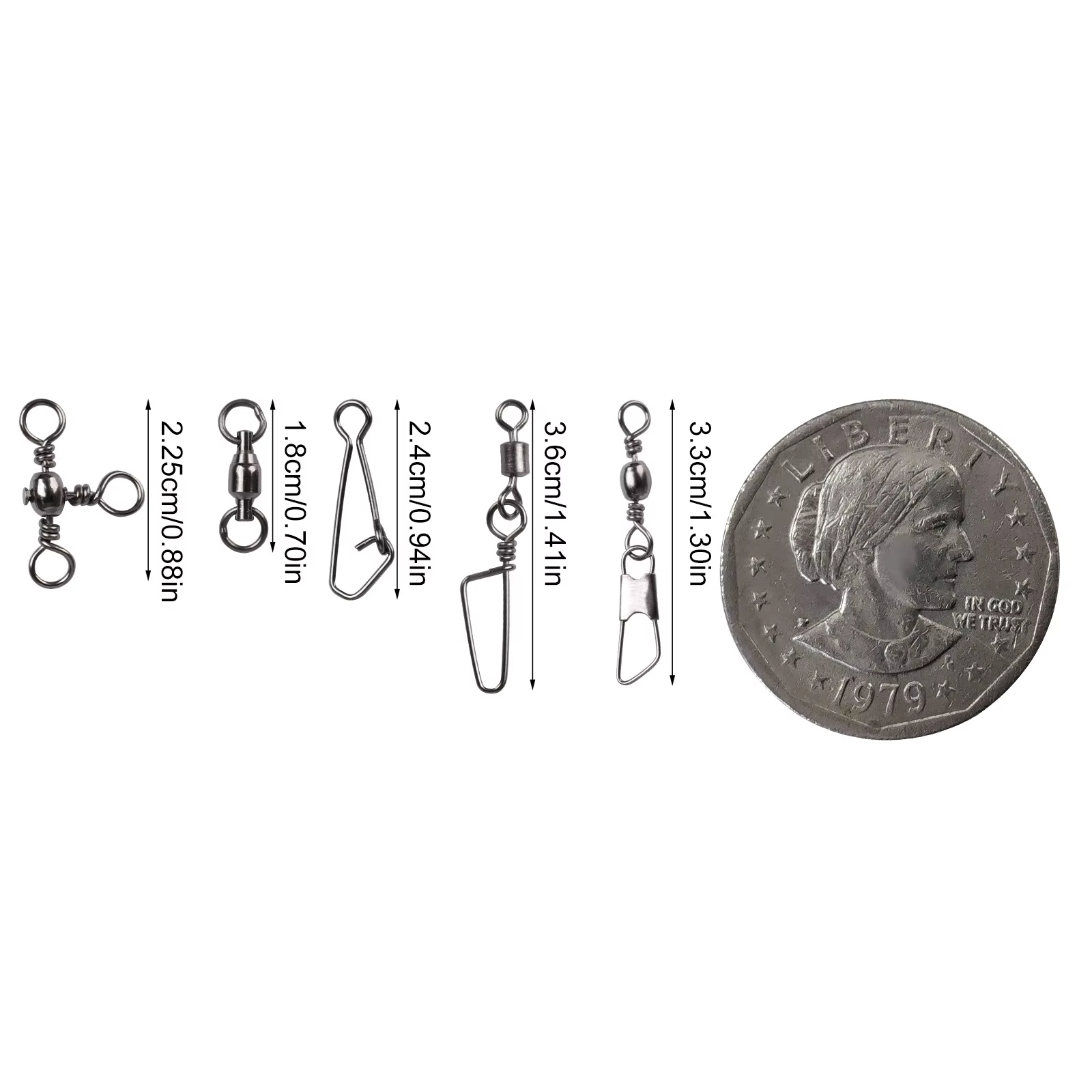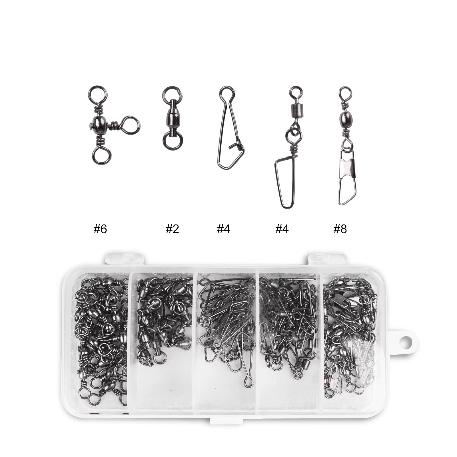 Juego de giratorios de pesca:Barril giratorio de 3 Vías + rodamiento de bolas giratorio con anillo derramado + broche enganchado + giratorio rodante con Costlock Snap + barril giratorio con bloqueo de seguridad
