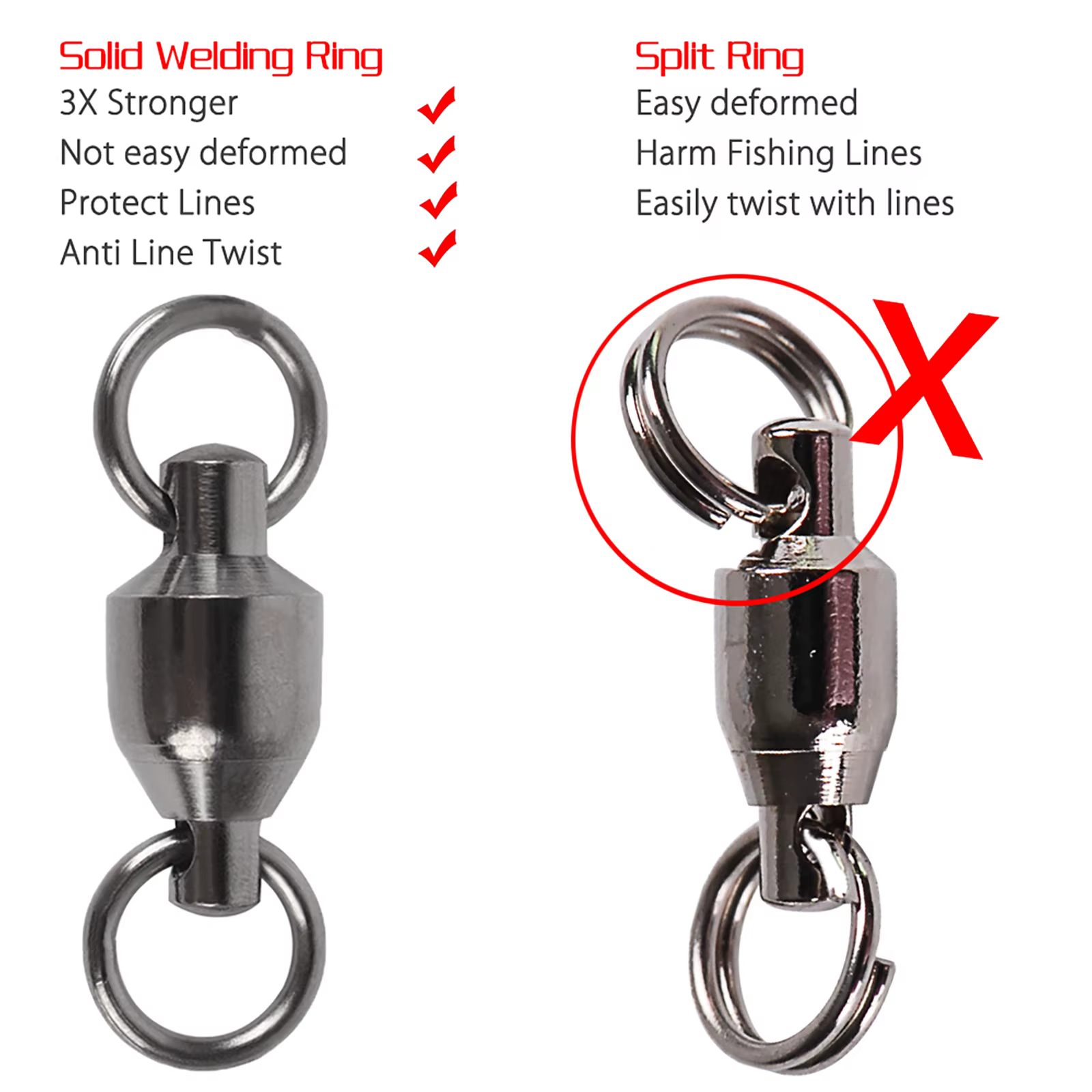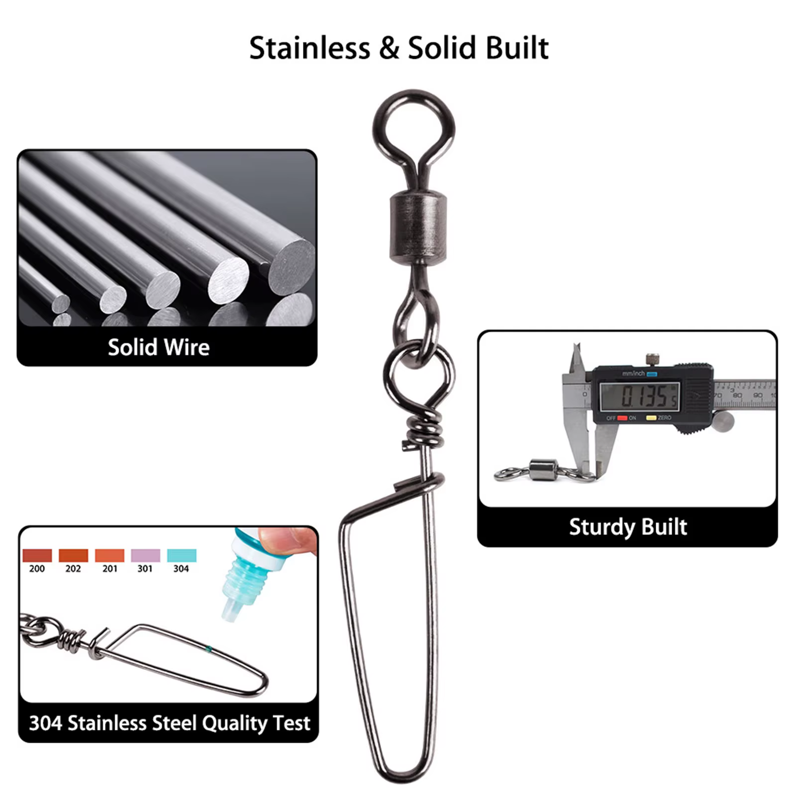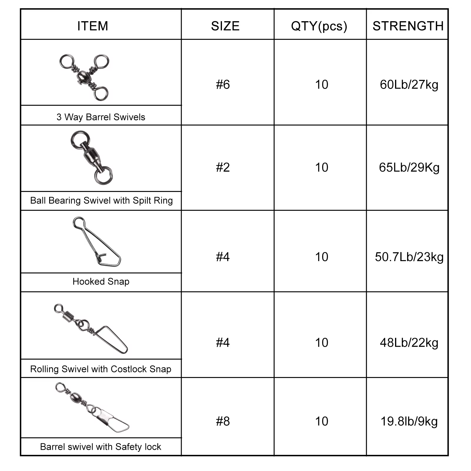 Juego de giratorios de pesca:Barril giratorio de 3 Vías + rodamiento de bolas giratorio con anillo derramado + broche enganchado + giratorio rodante con Costlock Snap + barril giratorio con bloqueo de seguridad