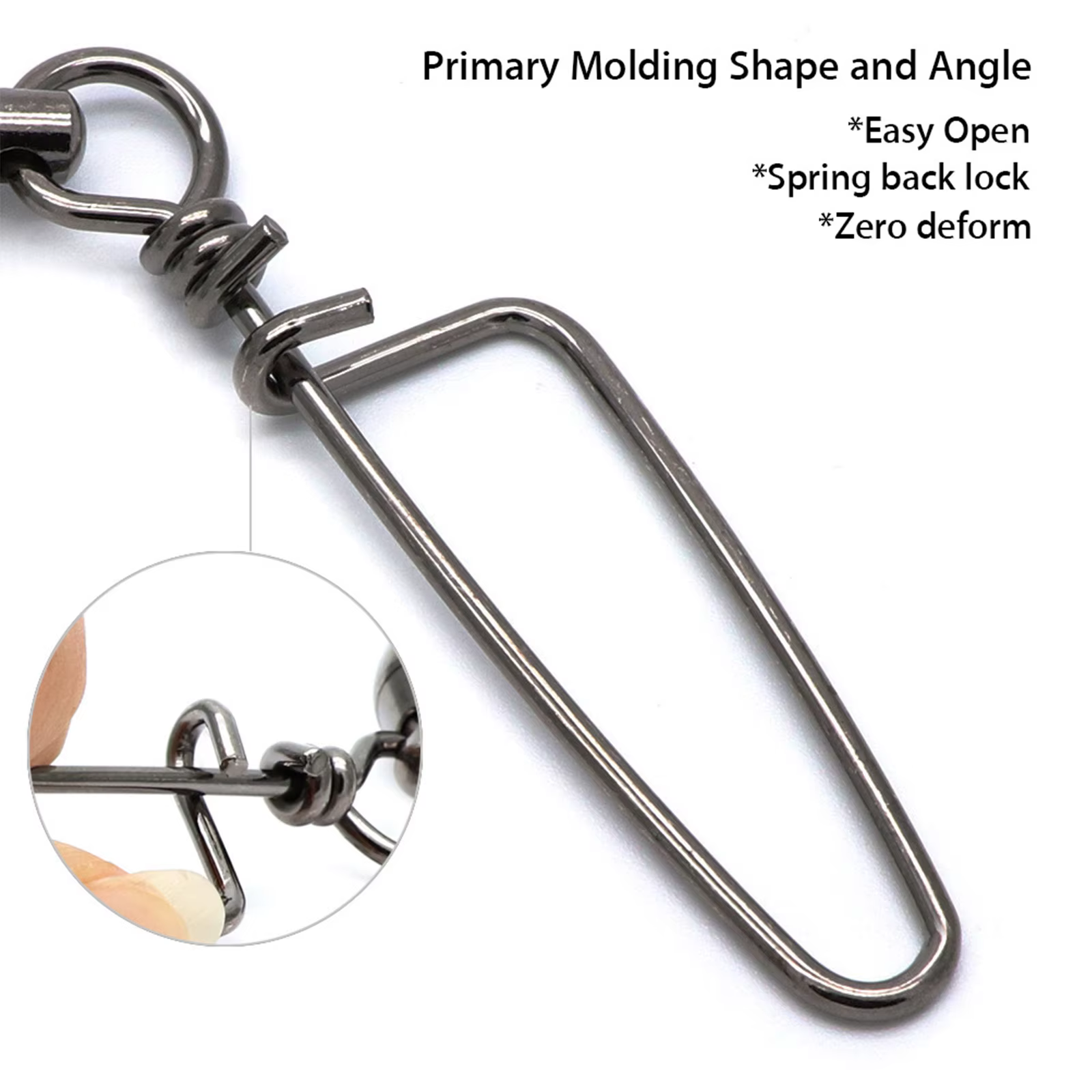 Fácil de usar.Diseño de apertura de bloqueo rápido, rápido y fácil de cambiar señuelos o líderes en segundos, simplemente desliza el señuelo encendido o apagado en el cierre a presión