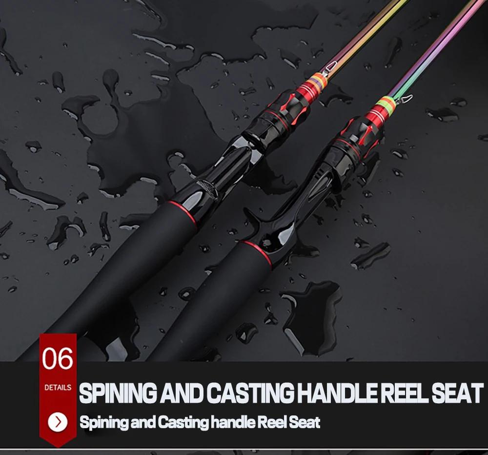 Ya sea que esté pescando trucha, lubina o jigging, esta caña de pescar puede con todo. Con una columna vertebral flexible pero potente, esta caña puede soportar la lucha de incluso los peces más duros. Los suaves anillos de guía de cerámica garantizan que la línea fluya sin esfuerzo, reduciendo la fricción de la línea y el desgaste en la línea. El anillo superior de cerámica antienredos y el asiento en espiral bloquean el carrete de pesca de forma segura en su lugar, evitando que se retuerza o gire durante lanzamientos pesados.