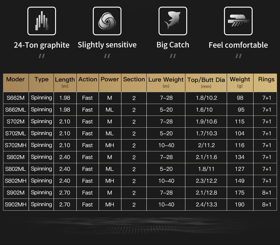 Caña giratoria 1,98 M 2,1 m 2,4 m acción rápida ML M MH caña de pescar de carbono para Pike ML M MH