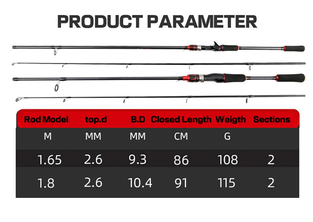 Caña de pescar giratoria Baitcasting, 2 secciones, 1,8/mTravel 1,65, peso de fundición de carbono, 5-25g, señuelo ultraligero rápido