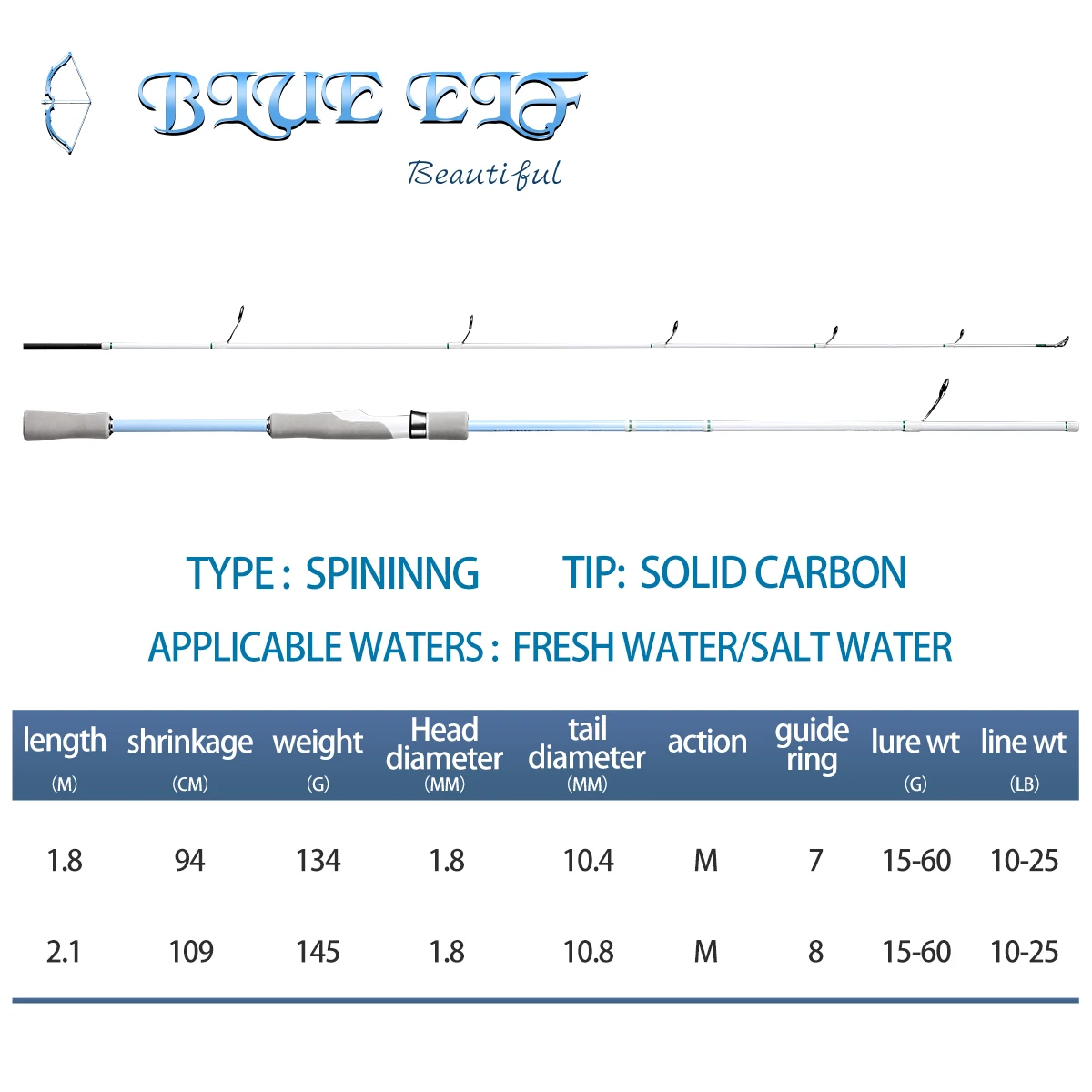 Caña de pescar giratoria de Punta sólida de acción de 1,8 m/2,1 m M