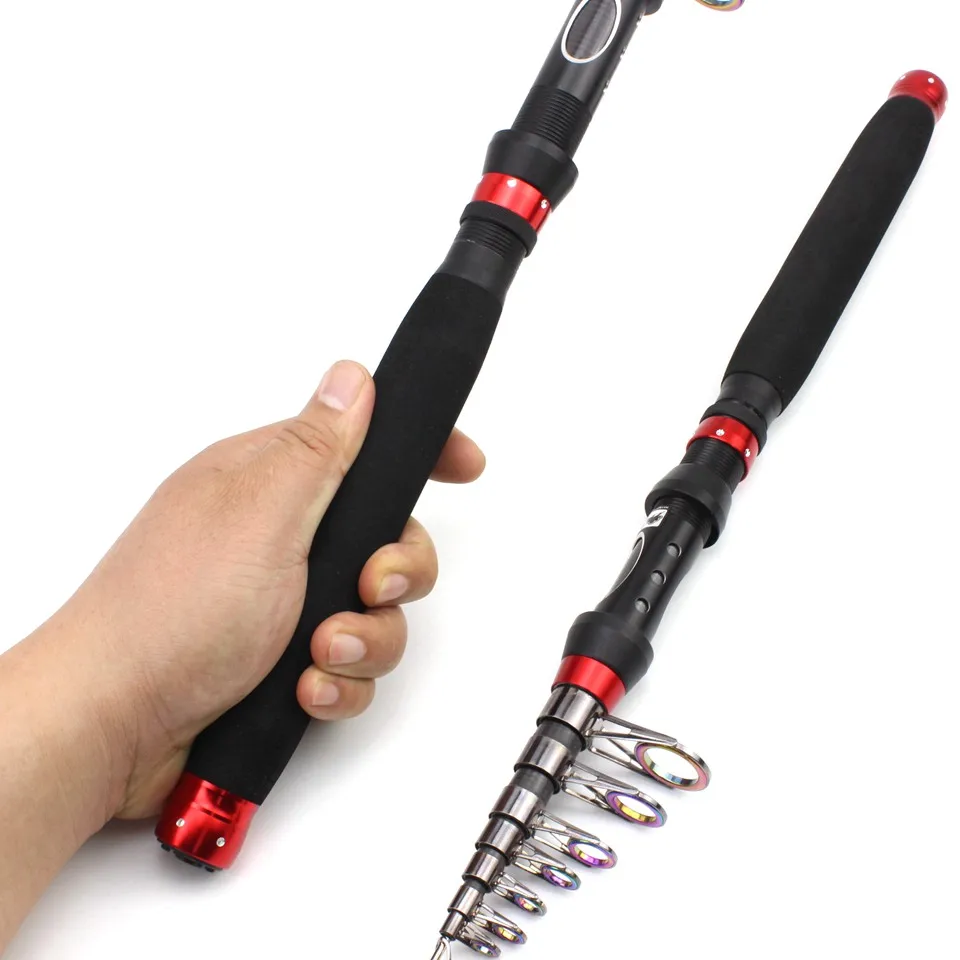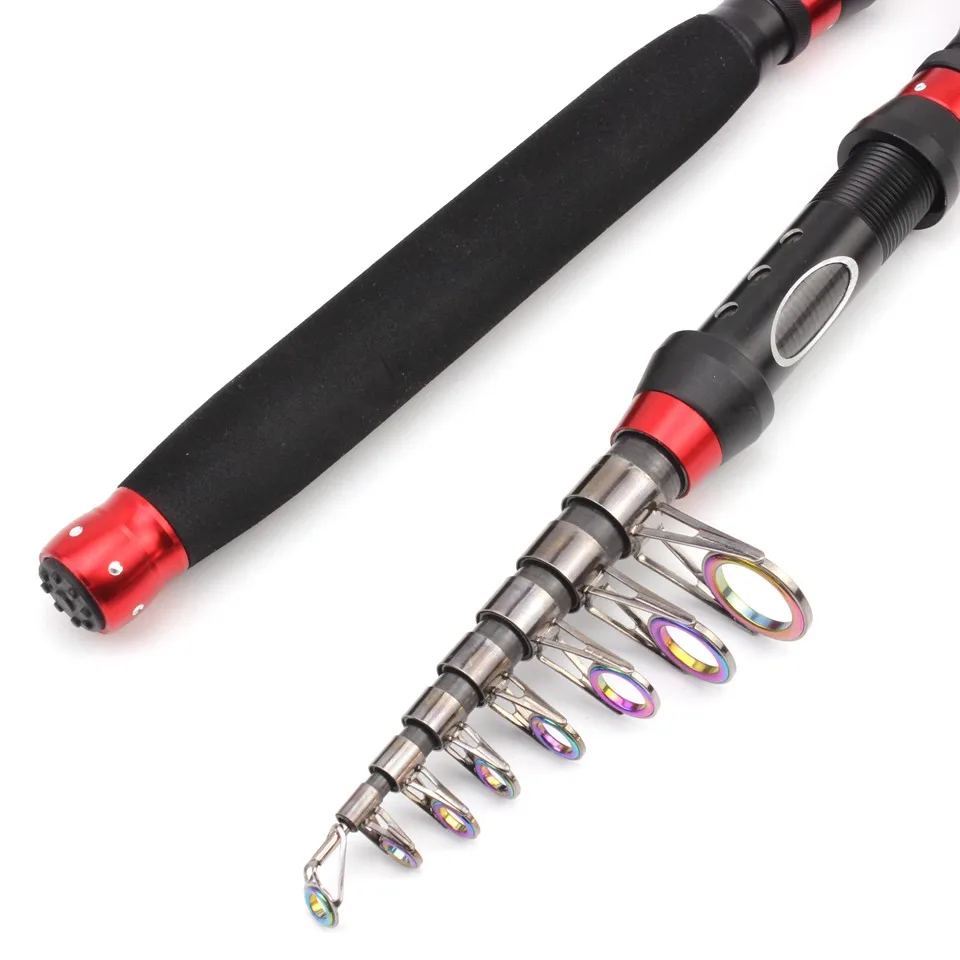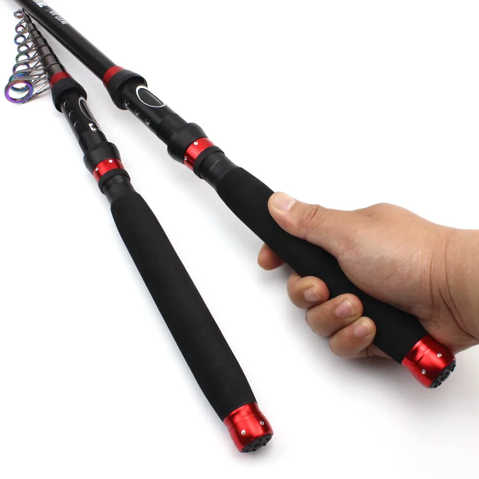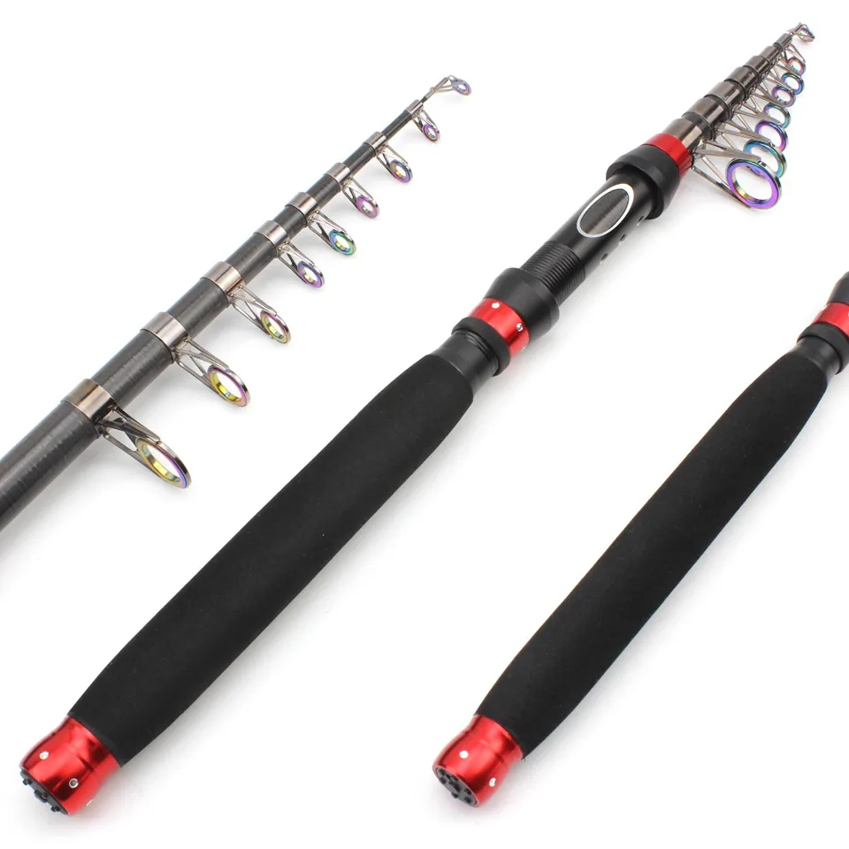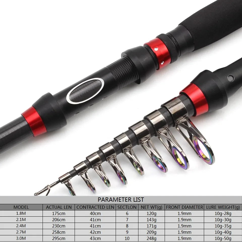 Caña de pescar giratoria de carbono, aparejo de pesca de viaje con mango telescópico EVA, 1,8 m, 2,1 m, 2,4 m, 2,7 m, 3,0