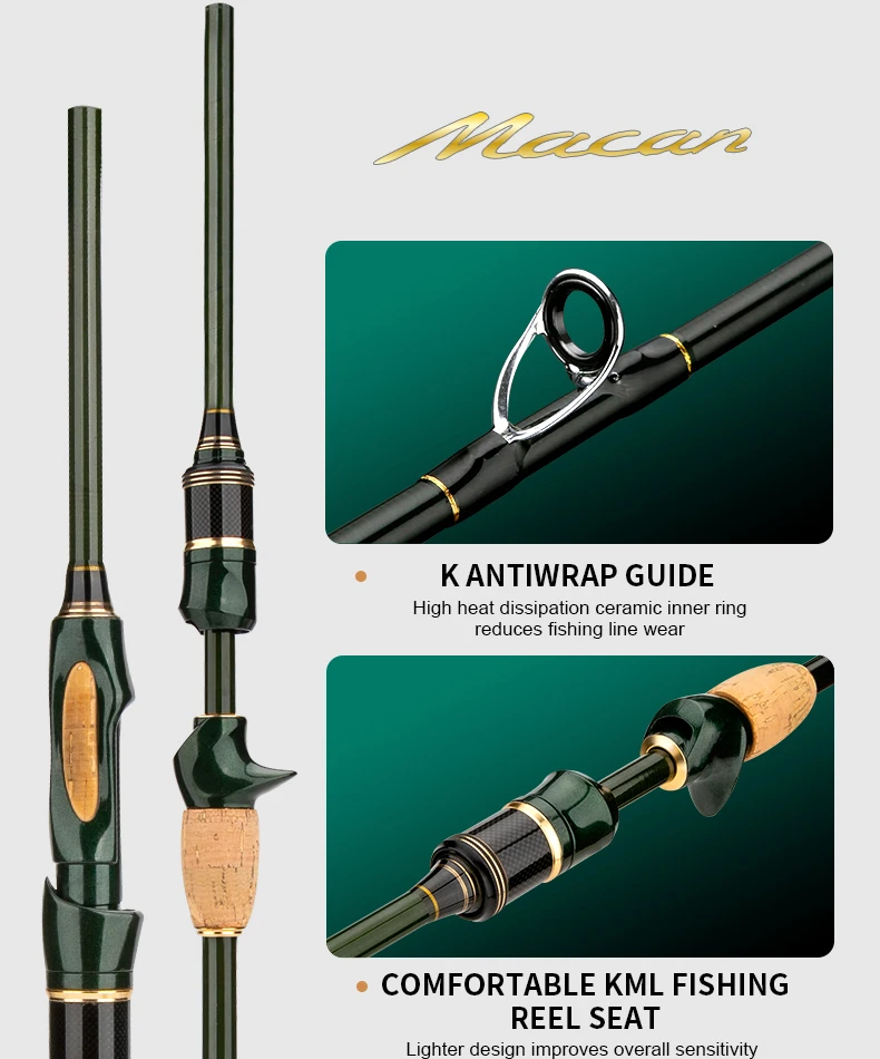 Gran caña a muy buen precio. Ojalá los anillos no fueran microanillos para que pudieran manejar una línea un poco más gruesa, pero bueno, ¿qué puedes hacer? Pescó un abadejo de 2 kg y un bacalao de 4 kg, lo manejó sin problemas. ¡Se ve genial también!
