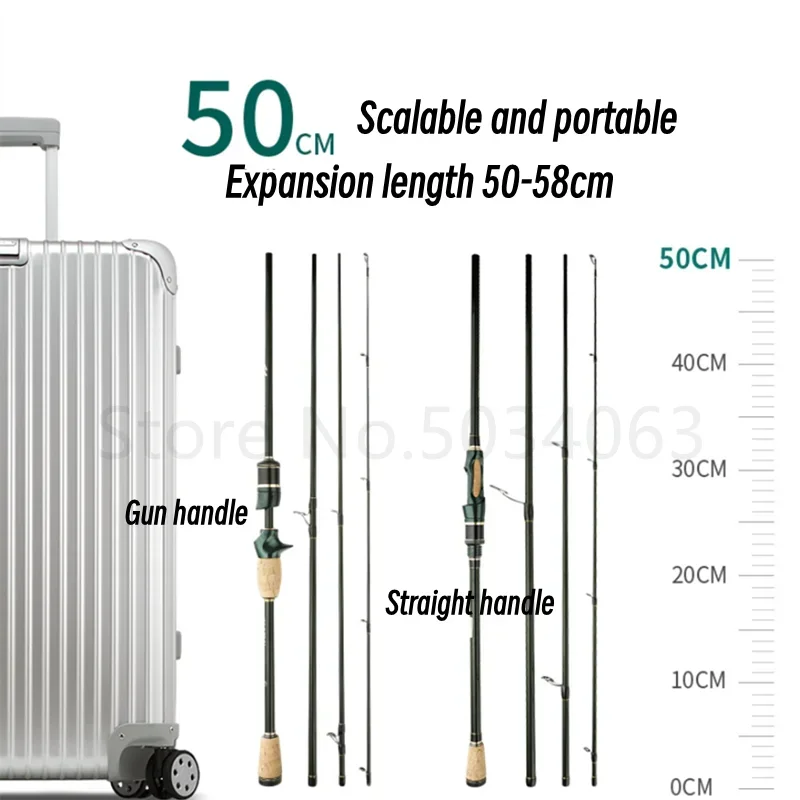 Caña de pescar giratoria de carbono fundido 4-5 secciones 1,8 m/2,1 m/2,4 m Caña de viaje portátil Caña de pescar giratoria Equipo de pesca