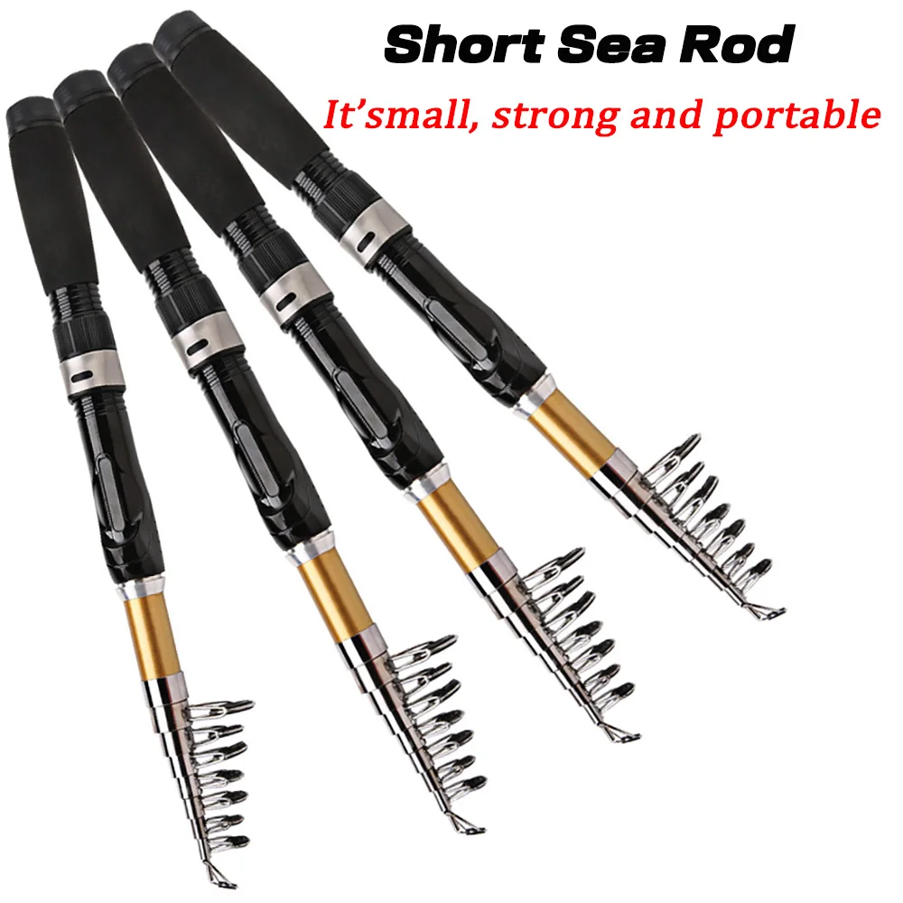 Caña de pescar giratoria de fibra de carbono portátil 1,5 M 1,7 M 1,9 M 2,1 M para pesca en el mar telescópica carpa caña de pescar aparejos de pesca de viaje