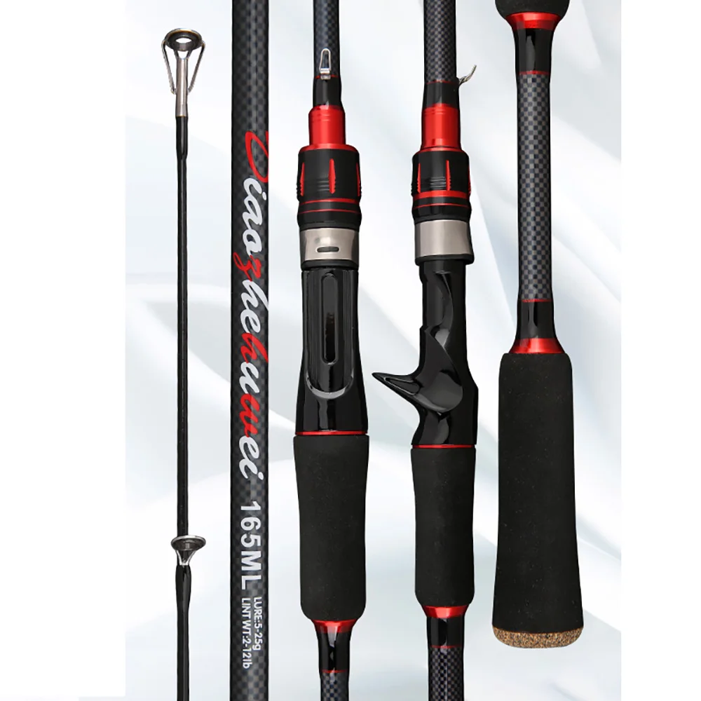 Caña de pescar giratoria de carbono con señuelo, 1,65 m, 1,8 m, guía de cerámica, para viaje, 5-25g, ML