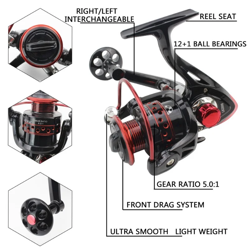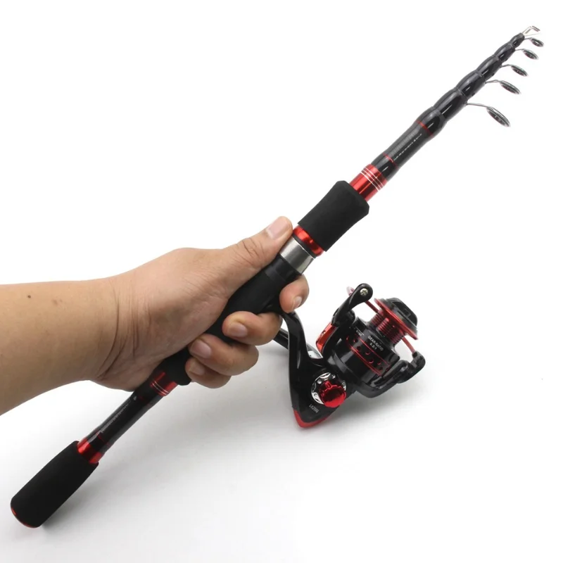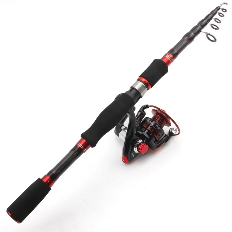 Caña de pescar giratoria con carrete, Combo de caña de fibra de carbono con línea de cebo de rueda para pesca en Lago, río, barco, Roca, playa, 1,8 m/2,1 m