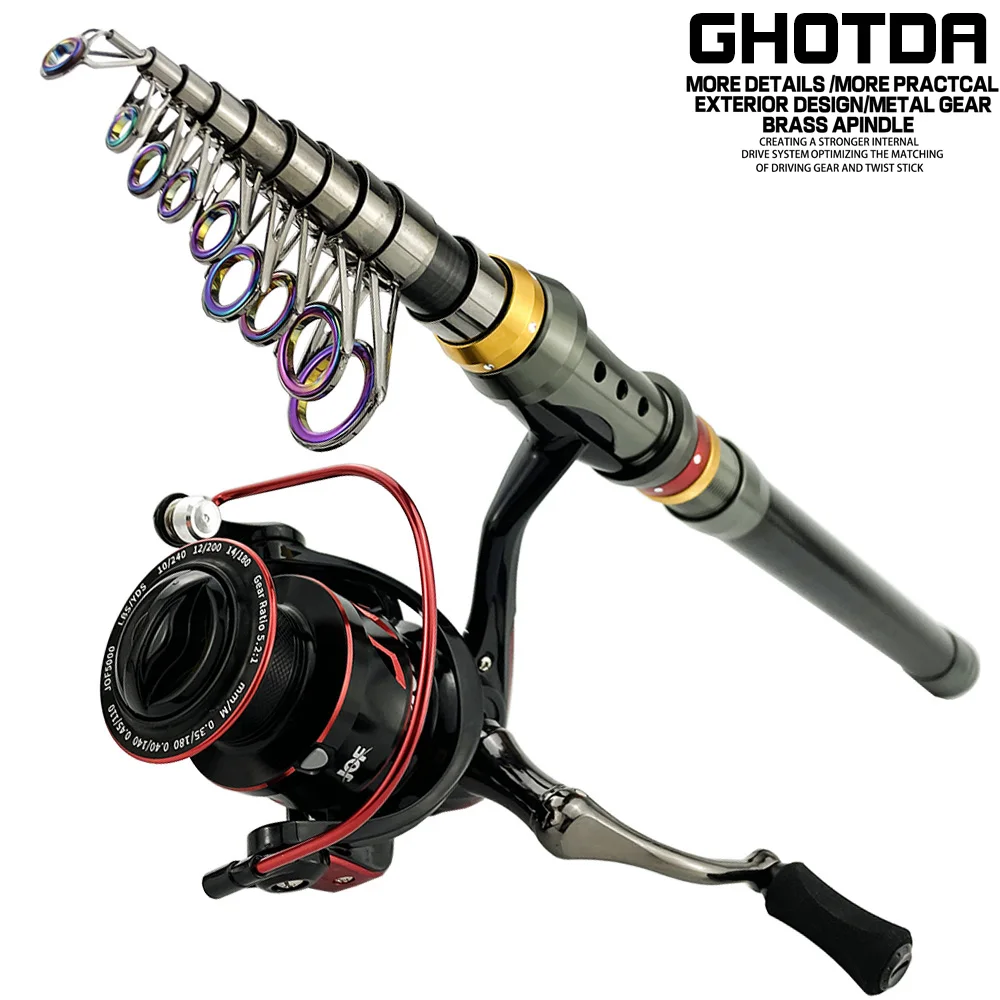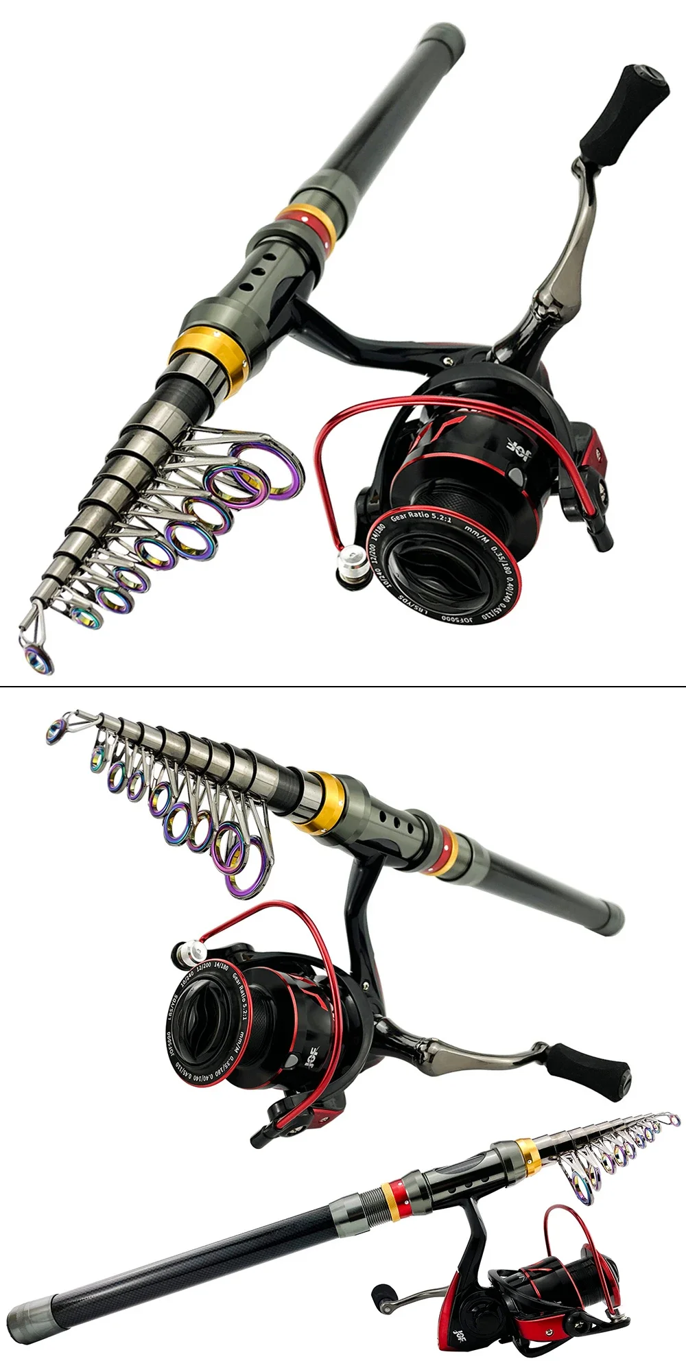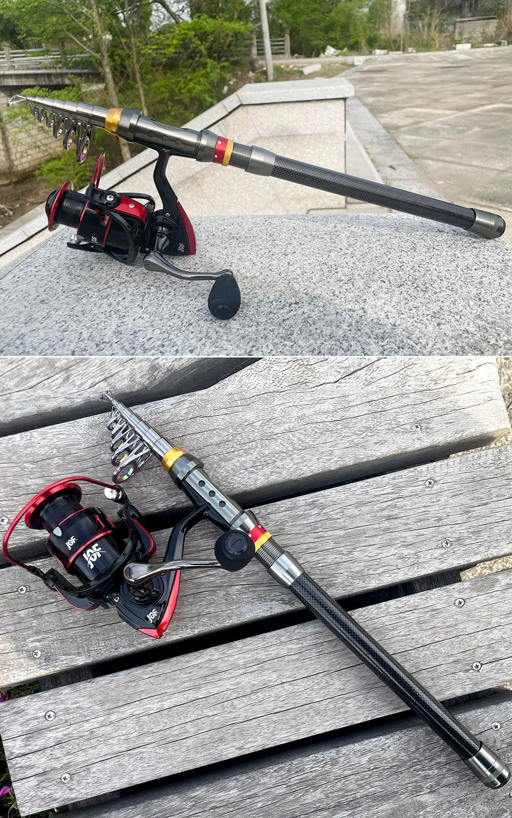 Caña de pescar telescópica y rueda de carrete de pesca Combo de caña de pescar