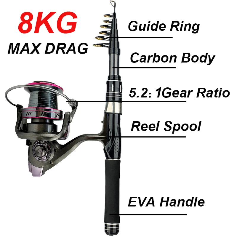 Caña de pescar giratoria corta portátil para mar/señuelo, carrete alimentador de carpa de 1,5-2,4 M, serie 1000-4000, arrastre máximo de 8KG, Combo para principiantes - imagen 2