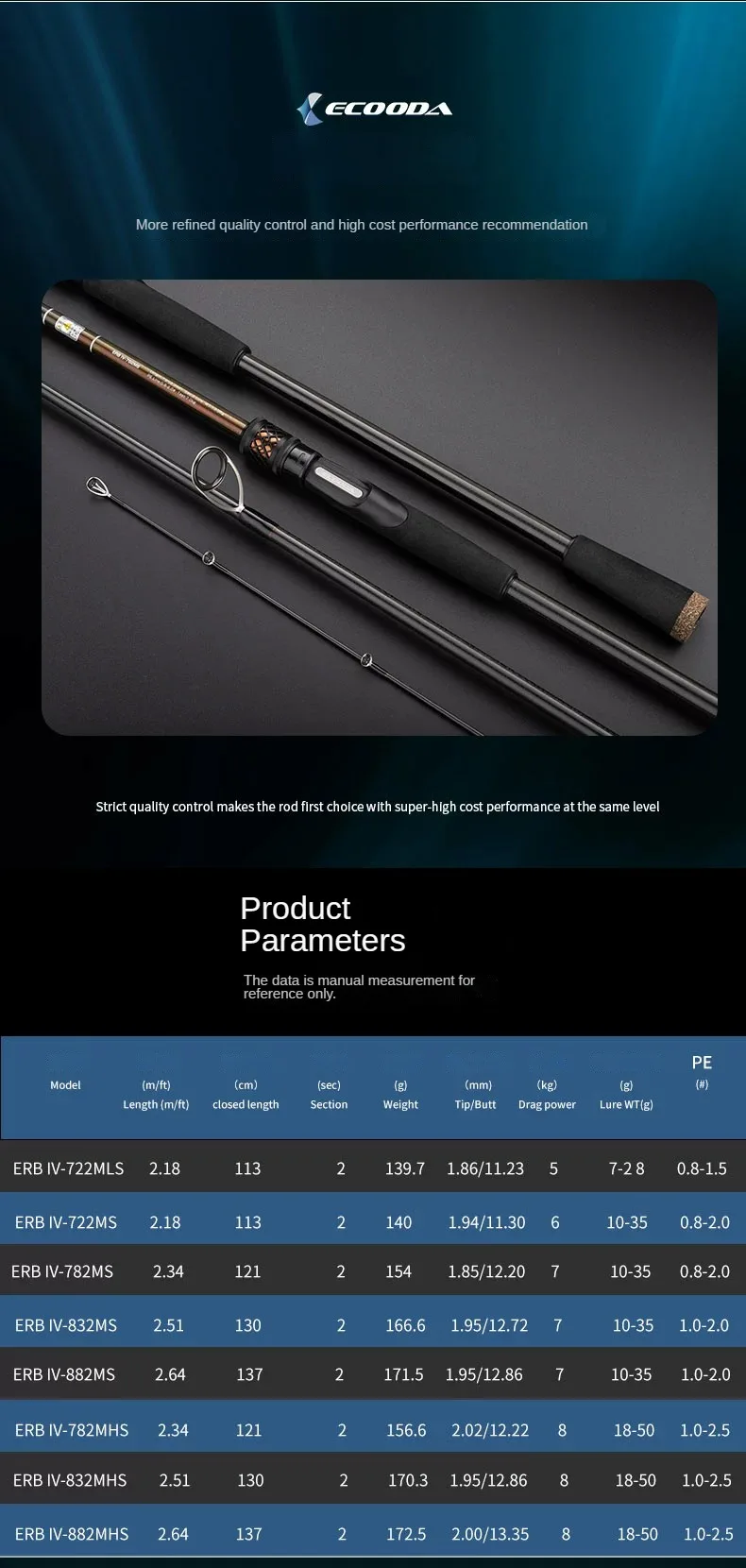 Caña de pescar giratoria ECOODA Ranger IV Fuji Guide para lubina, 2 secciones, señuelo de agua salada de lanzamiento largo, 2,1 m2,4 m2,7 m