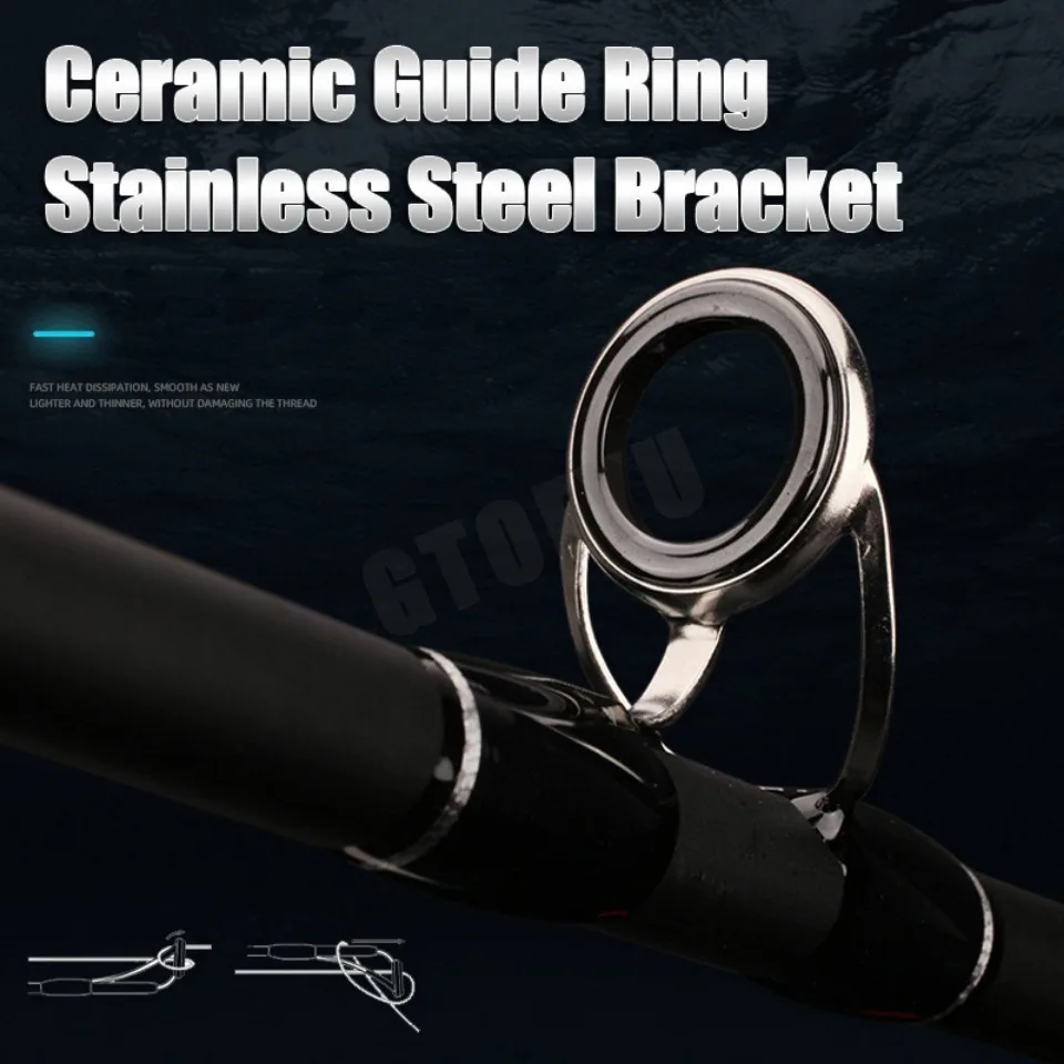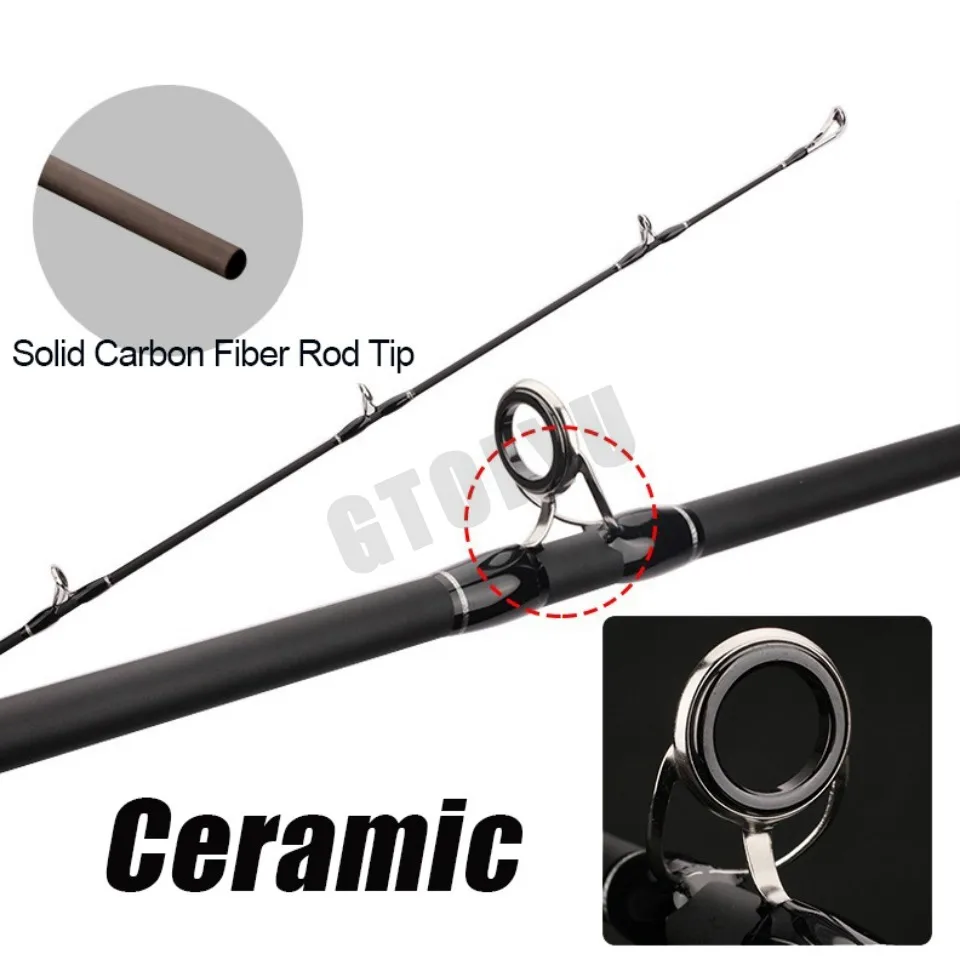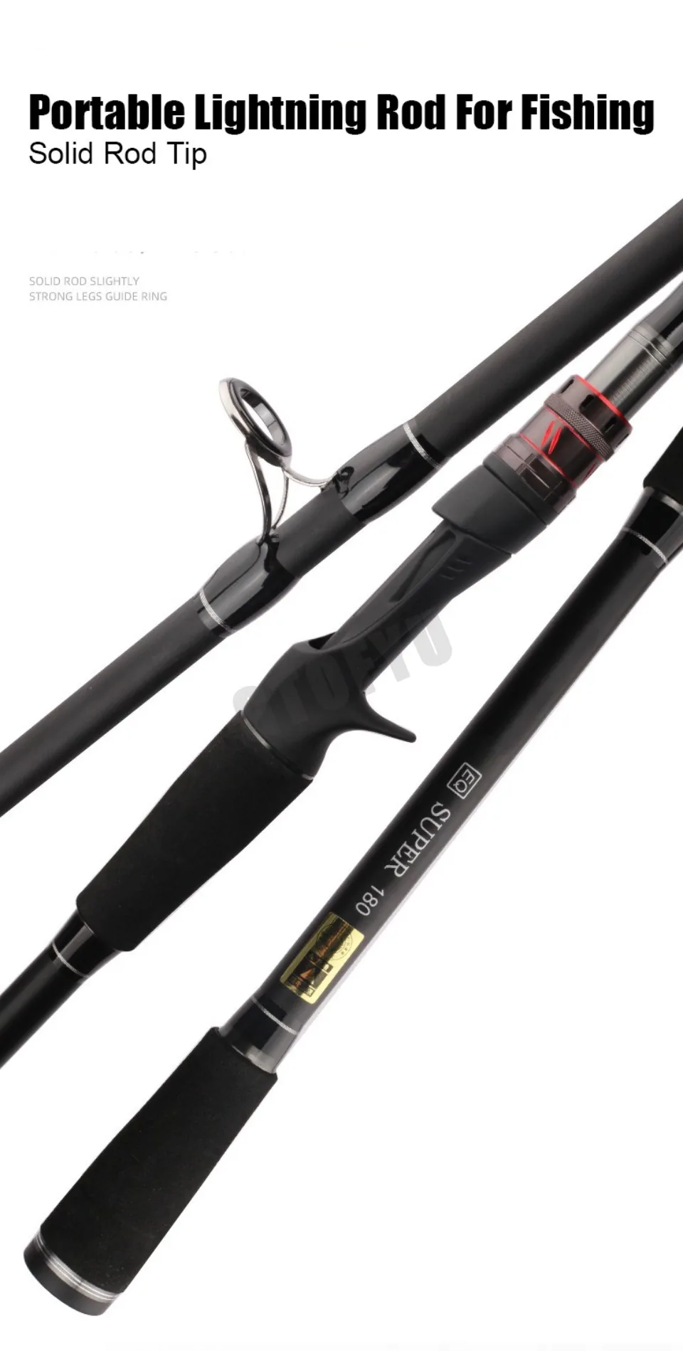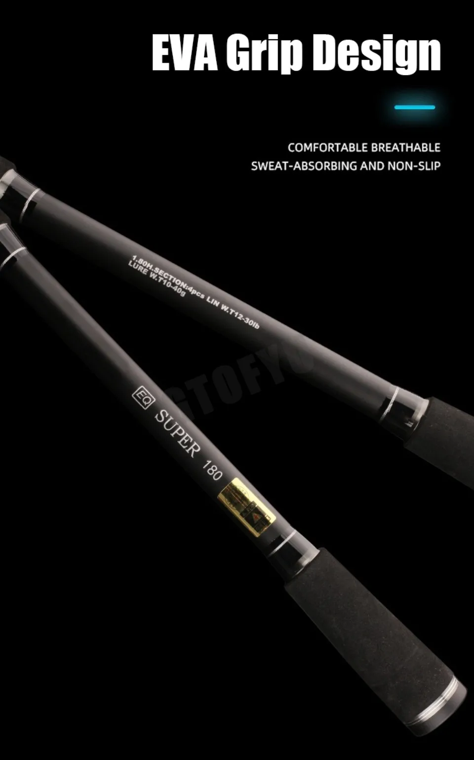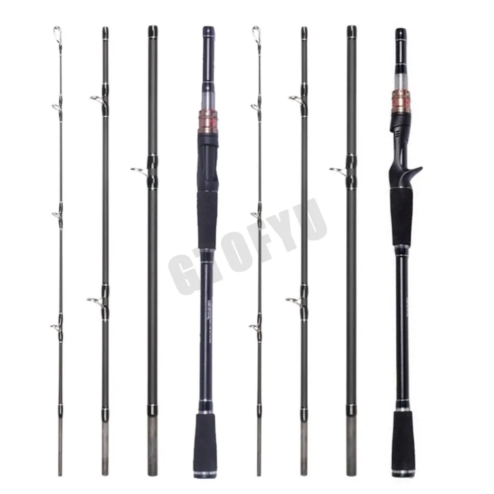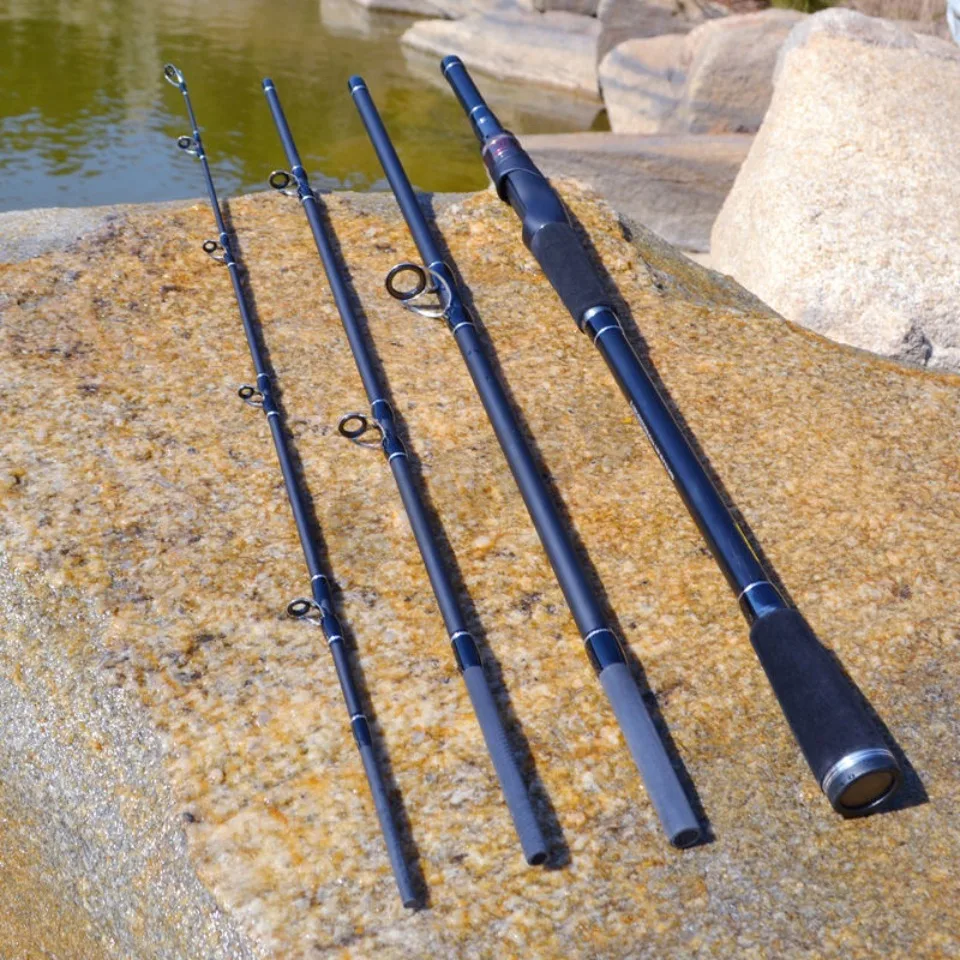 Caña de pescar giratoria de fibra de carbono, 1,8 m, 2,1 m, portátil, potencia H, 10-40g, señuelo de acción rápida, 4 secciones, aparejos de caña de señuelo