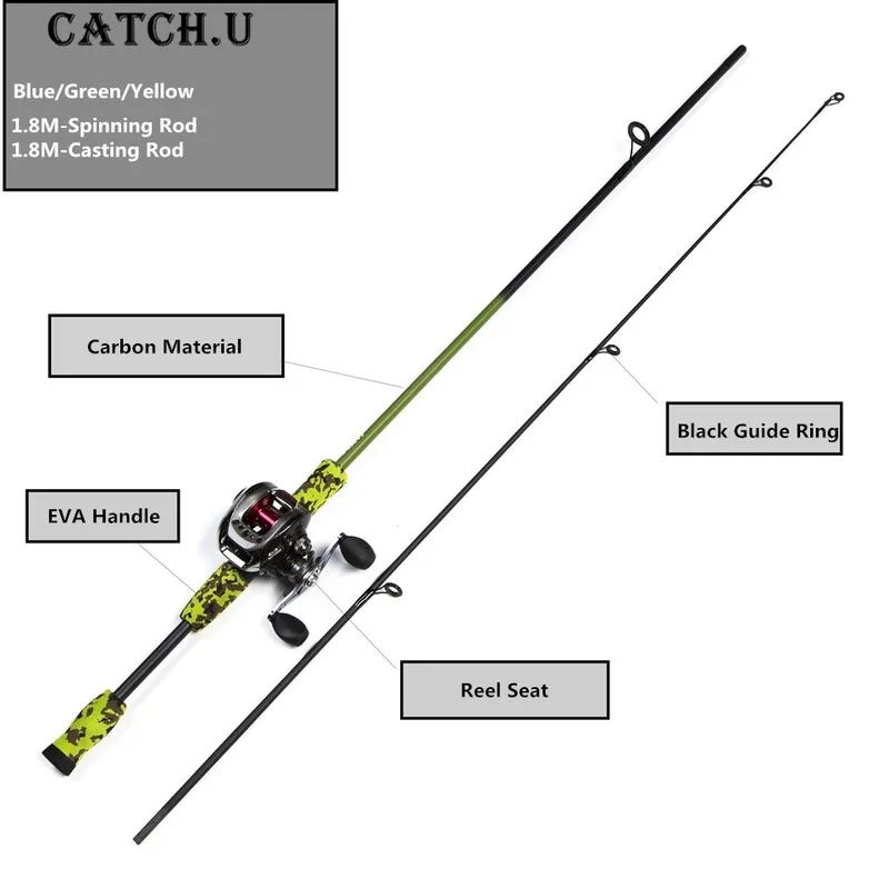 Caña de pescar giratoria de fibra de carbono, 1,8 m, peso del cebo, 3-20g, depósito, estanque, río, señuelo rápido