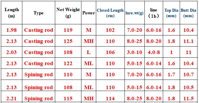100% nuevo y de alta calidad Longitud: 1,98/2,03/2,13/2,21 M Longitud cerrada: 102-114cm Peso de la varilla: 108-125g Material: fibra de carbono El paquete incluye: 1 varilla giratoria/varilla de fundición.Notas:1. El peso no incluye el bloque delantero y el bloque trasero;