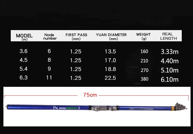 Paquete incluyendo: 1 x varilla de pesca (Sin carrete)