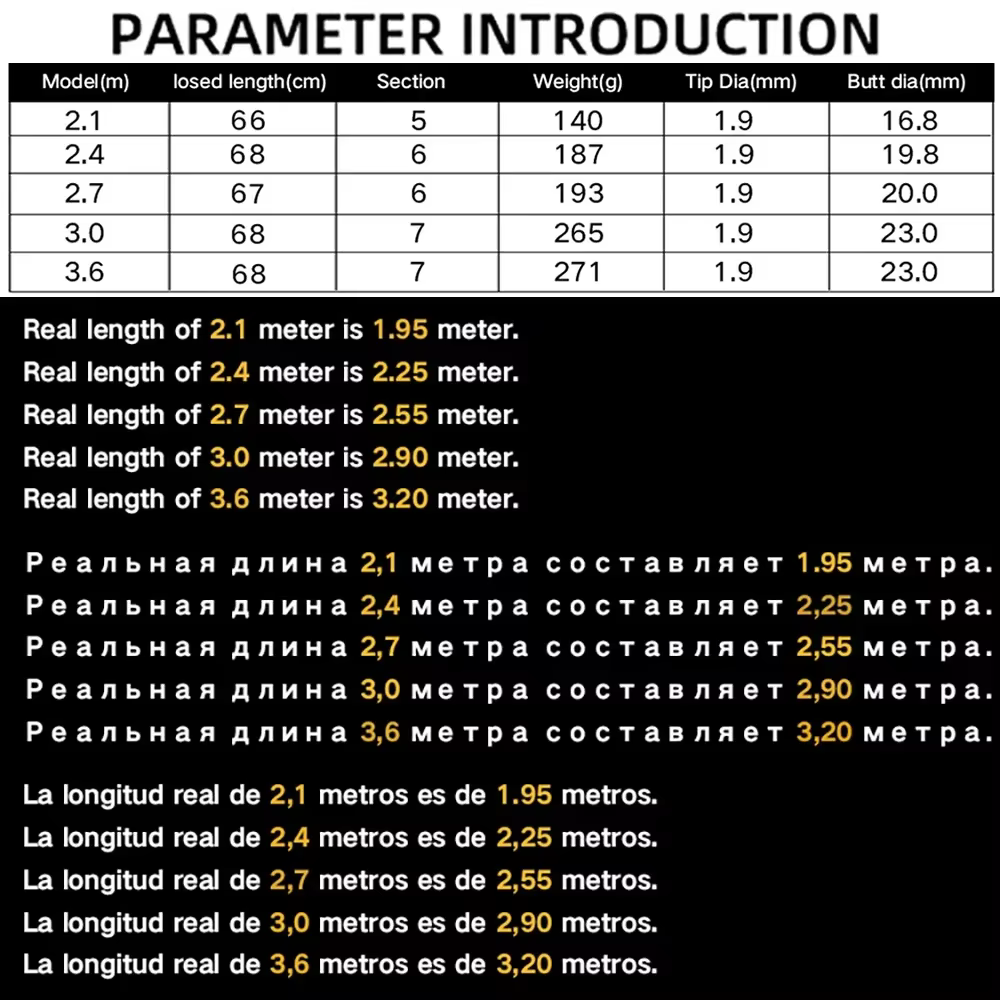 Tamaño: 2,1/2,4/2,7/3,0/3,6 M