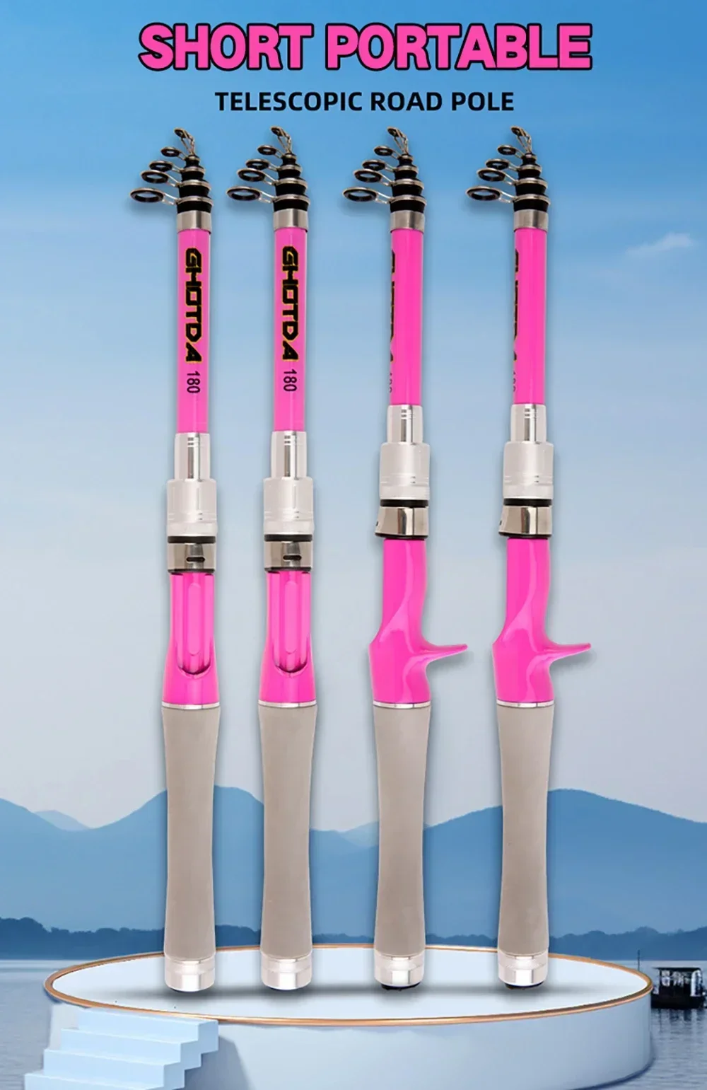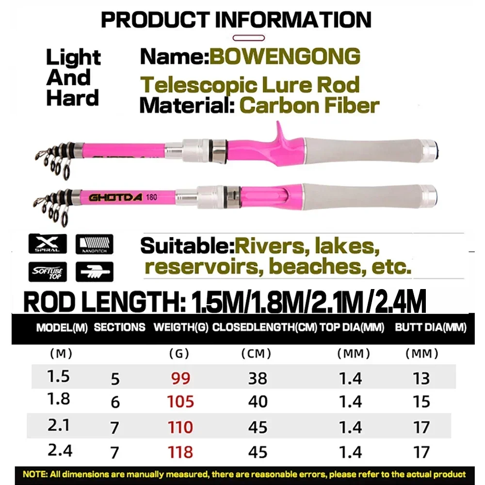 Caña de pescar giratoria de fibra de carbono, caña de pescar telescópica superdura de 1,5 M, 1,8 M, 2,1 M, 2,4 M, poste de viaje ultracorto