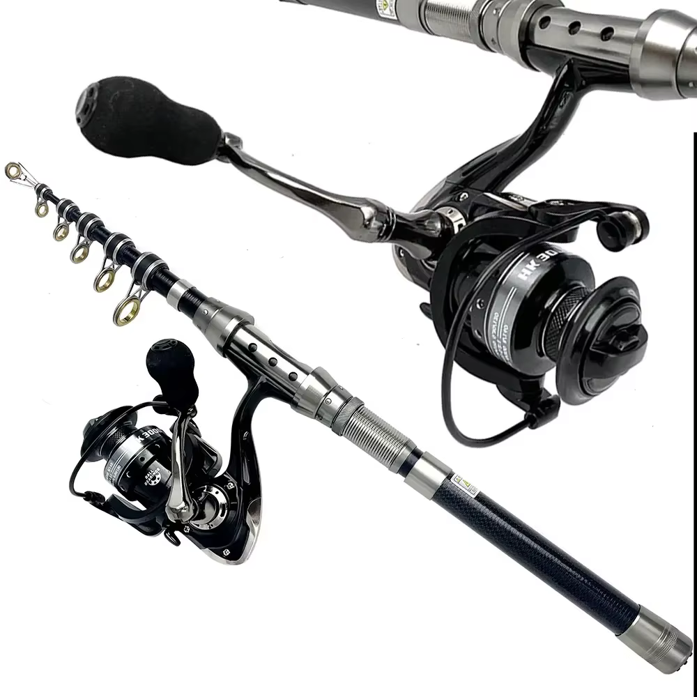 3. Caña de pescar de longitud ajustable para situaciones donde el equipo de pesca de tamaño completo es incómodo.