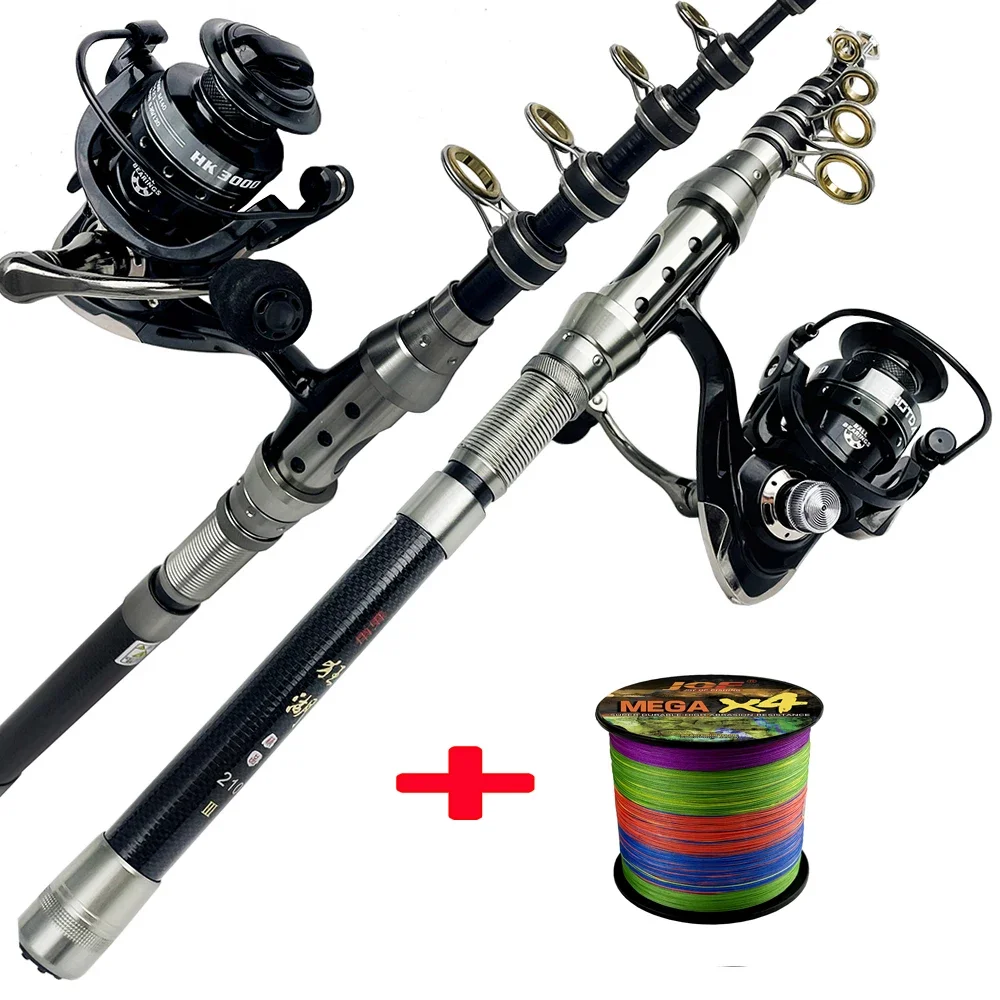 1. Esta caña de pescar está hecha de fibra de carbono, fuerte y duradera.