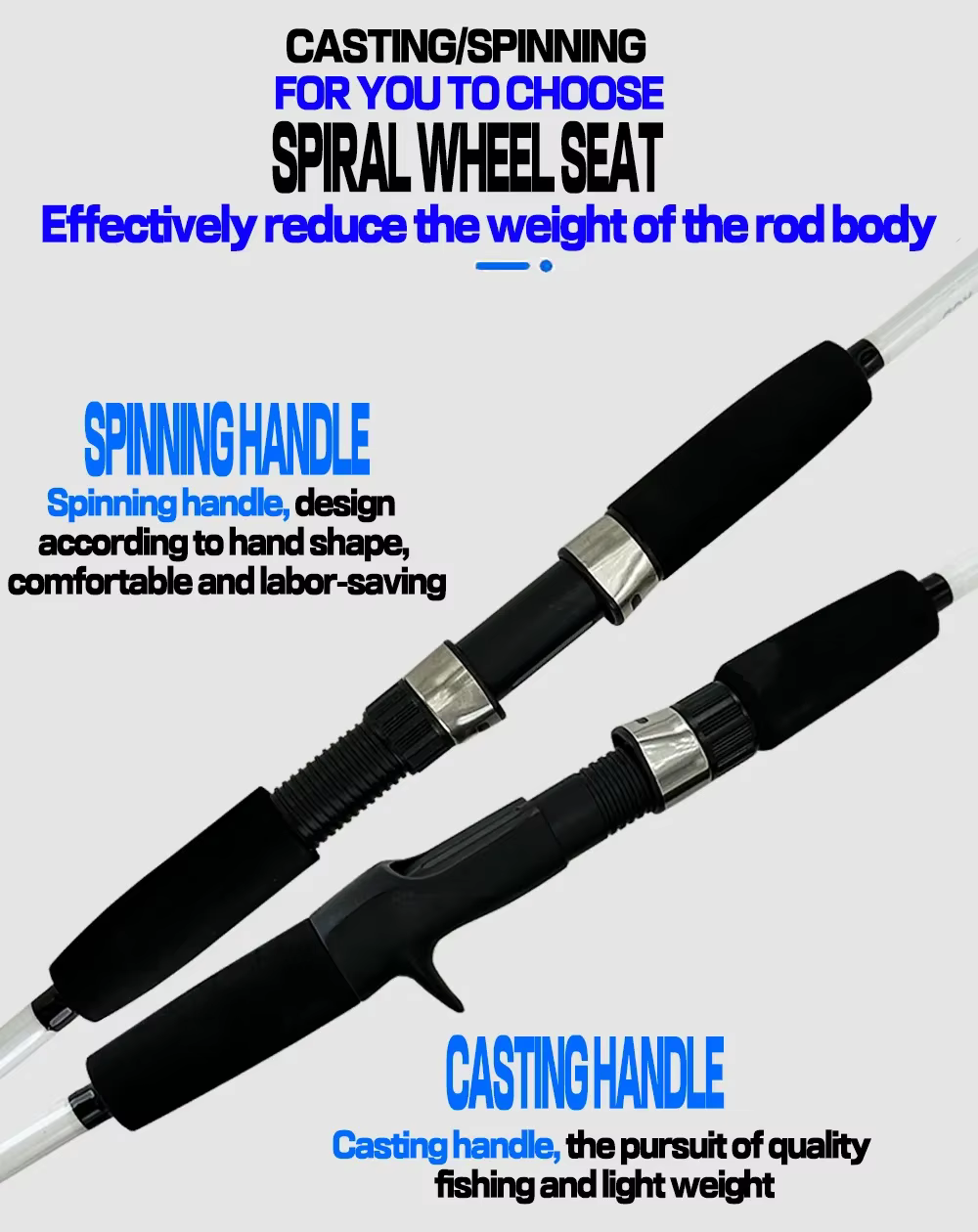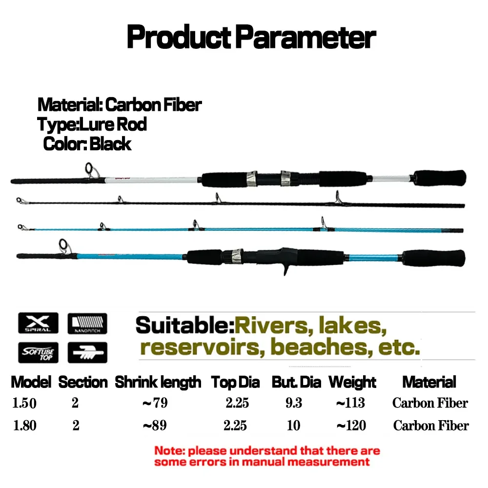 PARÁMETROLongitud del modelo: 1,5 M/1,8 MLongitud cerrada: 79 / 89cmSecciones: 2Potencia: MMaterial: fibra de carbonoPeso de Línea: 5 -15lbPeso del señuelo: 3G-21gMango: fundición (con gancho)/hilado (sin gancho)Color: Blanco/azul (opcional)CaracterísticasPunta de varilla gruesaLa tonalidad es sensible, atrapa peces rápidamente, no es fácil de romper.