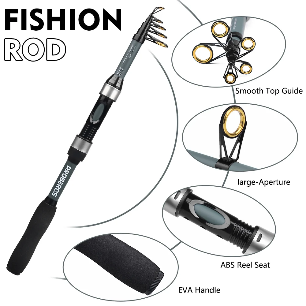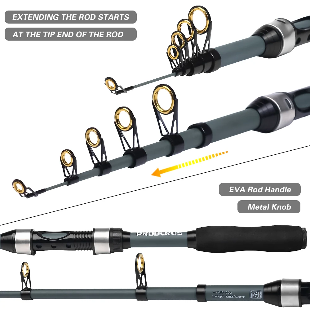 Caña de pescar giratoria de fibra de carbono ultraligera, portátil y duradera, 1,8 M/5,9 pies