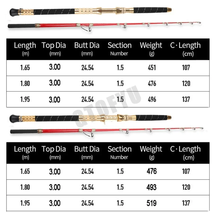 Caña de pescar giratoria de fundición, 1,65 M, 1,80 M, 1,98 M, 50kg, trasero recto, caña de lanzamiento superduro de aguas profundas, caña de pescar para barco oceánico