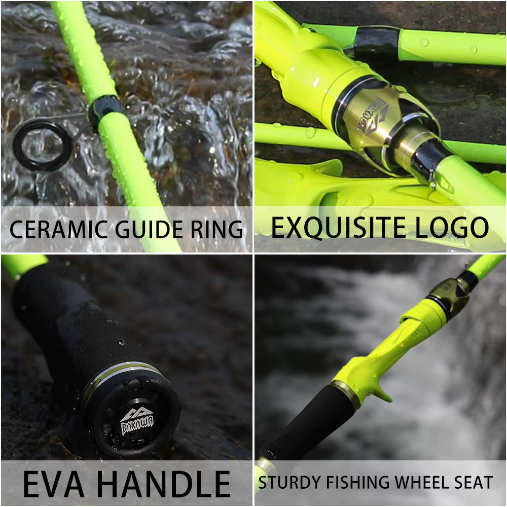 3.Materiales: Fibra de vidrio duradera de alta resistencia, aleación de aluminio, agarre de EVA.Tallado exquisito, pintura para hornear de alta gama.