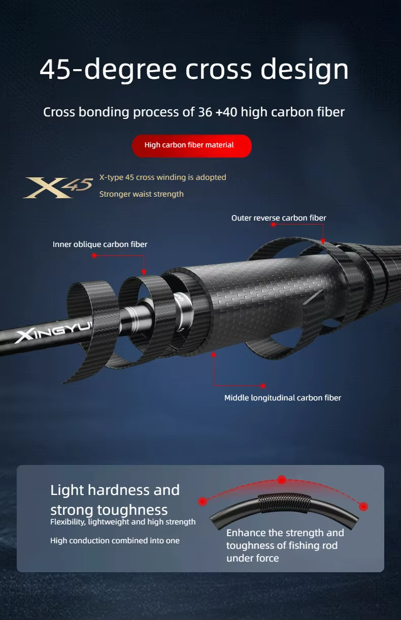 Proceso de unión cruzada de 45 grados de fibra de alto carbono en todo el cuerpo.