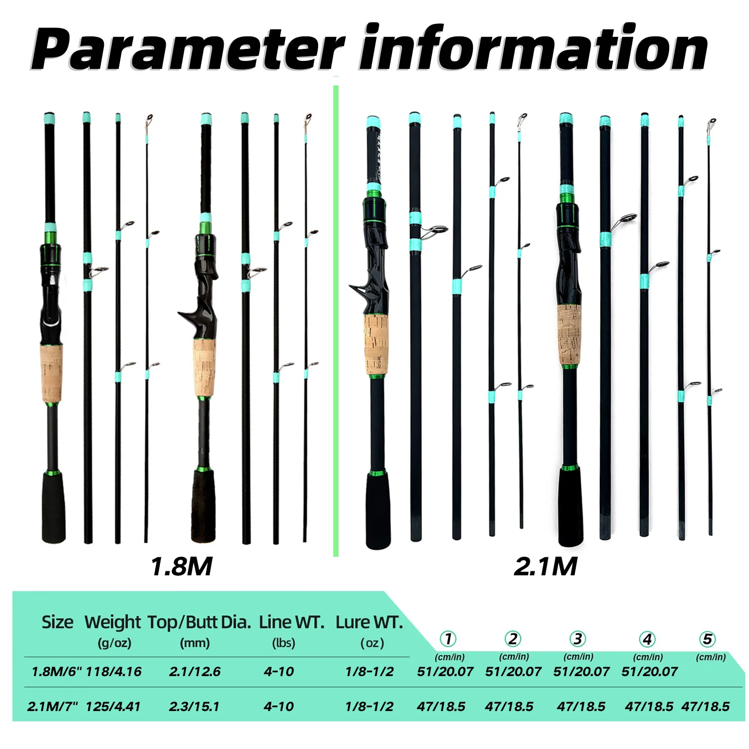 Caña de pescar giratoria de fundición GHOTDA, caña de pescar de viaje de carbono ultraligera de 1,8/2,1m, caña de pescar Baitcasting con mango de EVA de 4/5 secciones