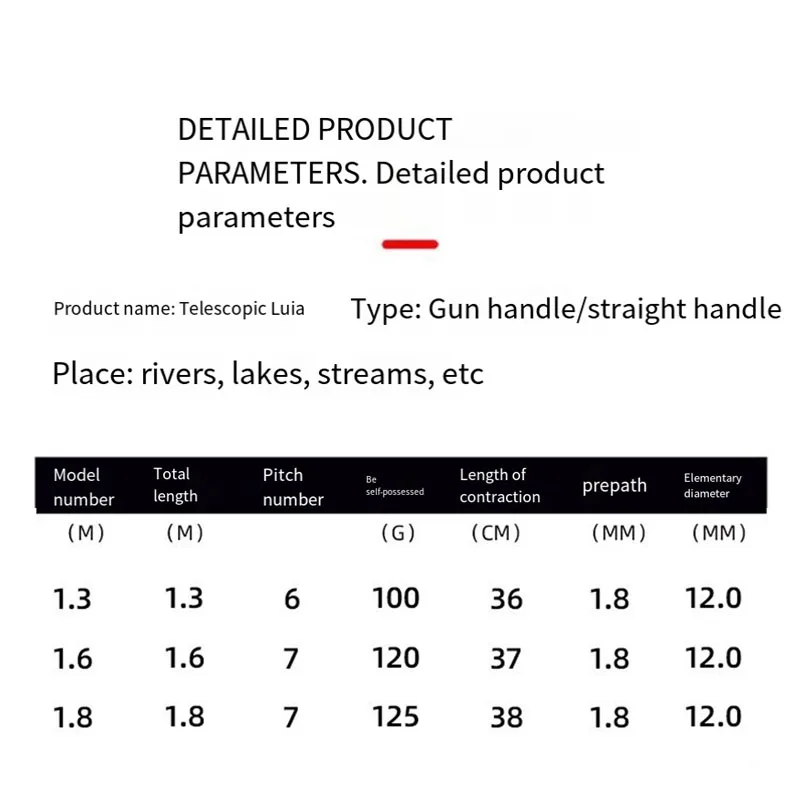 Usos: 1,3-1,8 metros, a menudo utilizado para la pesca con señuelos, pesca en el mar y otras pesques recreativos.