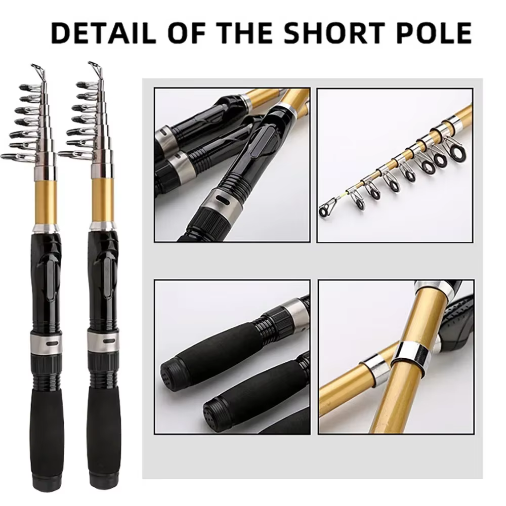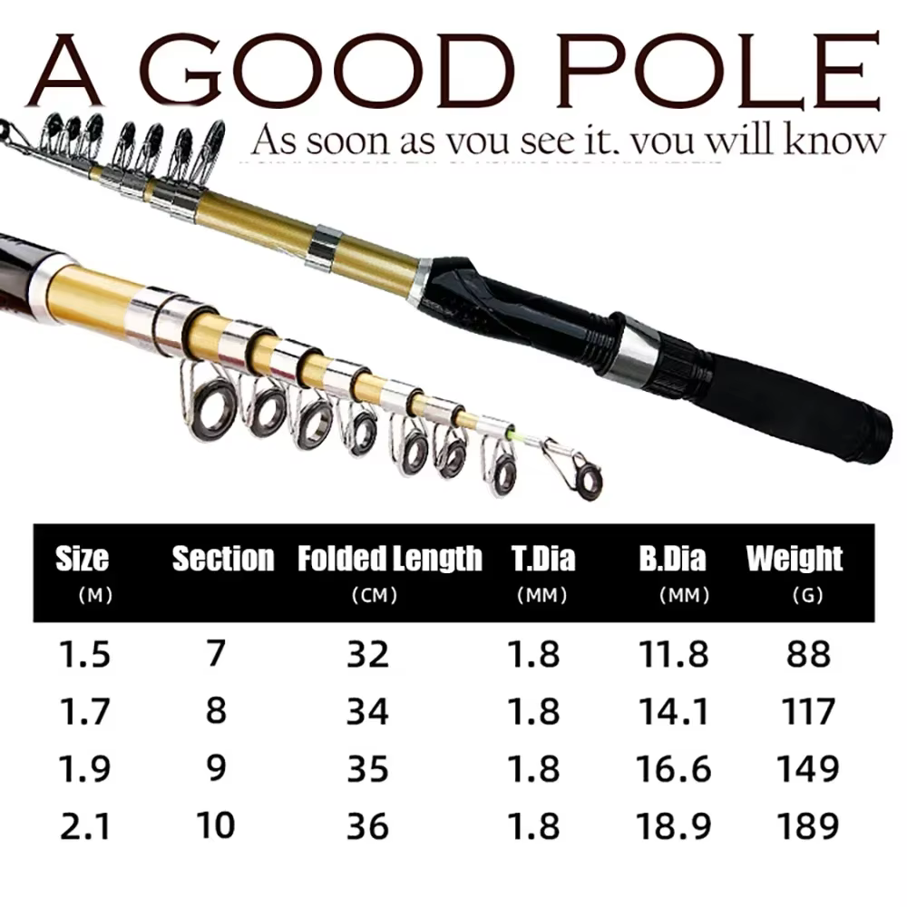 Caña de pescar giratoria portátil 1.5M 1.7M 1,9M 2.1M resistente fibra de carbono potencia telescópica viaje barco de mar caña de pescar retráctil 32cm-36cm