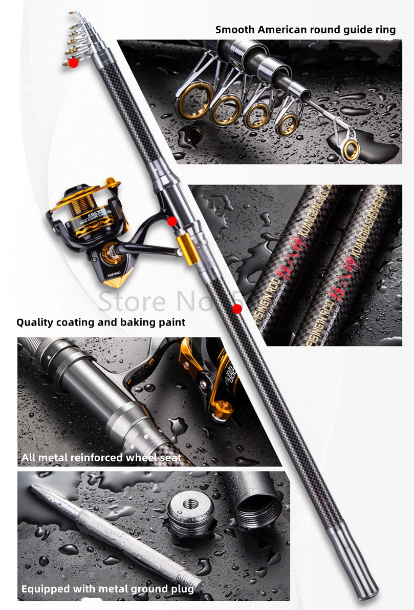 Caña de pescar rotativa portátil telescópica viaje mar barco roca superdura carpa 2,4 m, 2,7 m, 3,6 m, 3,9 M, 4,5 m, nuevo
