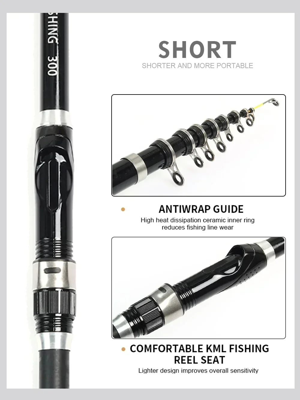 Caña de pescar giratoria portátil, aparejo duradero de fibra de carbono telescópica, alimentador de viaje para carpa, 1,5 M, 1,8 M, 2,1 M-3,0 M