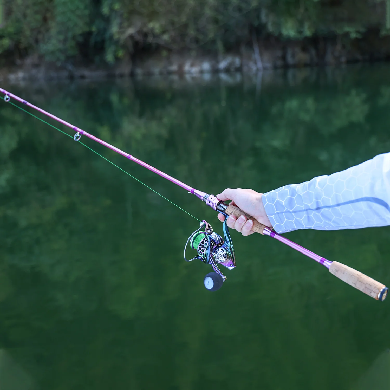 Equipada con una capacidad máxima de arrastre de 5 kg, esta caña puede manejar peces potentes como lubina y trucha con facilidad.